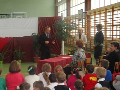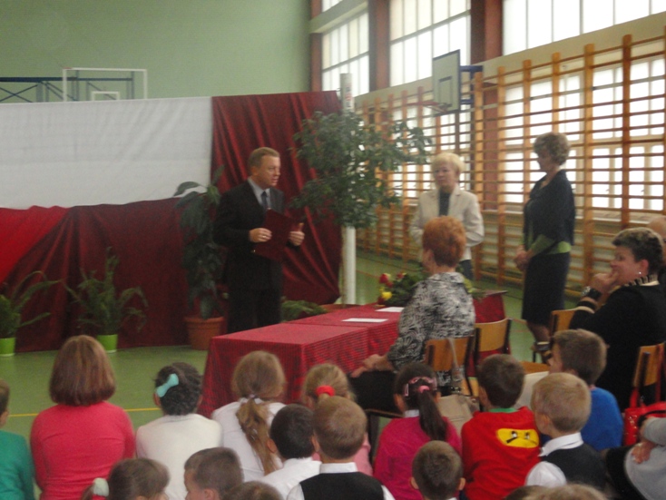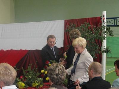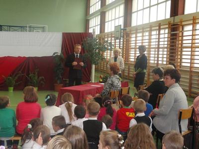 Po zakończonej akademii uczniowie złożyli nauczycielom życzenia i podziękowania, wręczyli symboliczne upominki. Do życzeń dołączył się również pan wójt Tomasz Mularczyk, który podziękował nauczycielom i pracownikom szkoły za trud włożony w wychowanie dzieci i młodzieży. Na zakończenie uroczystości Dyrektor Szkoły p. Marta Plichta wręczyła swoim pracownikom nagrody w dowód uznania ich pracy.