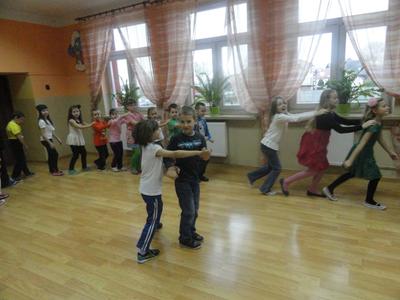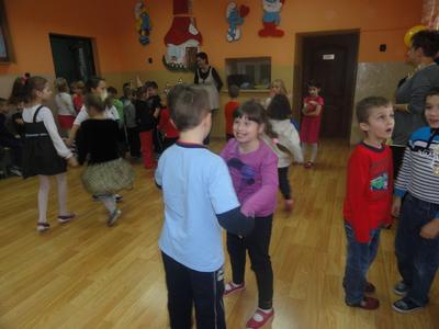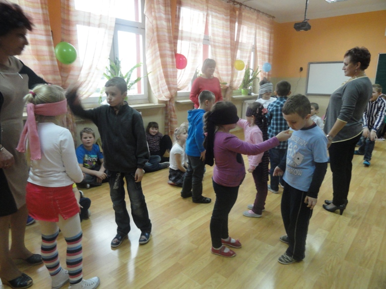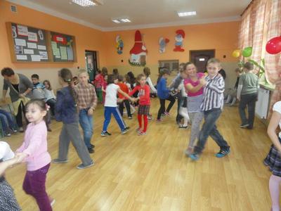 Odbyło się szereg konkursów, wybrano najładniej tańczącą parę, odbył się konkurs tańca na gazecie oraz taniec z balonami. Było dużo śmiechu i zabawy. Rodzice poszczególnych klas przygotowali swoim pociechom poczęstunek, z którego uczniowie chętnie skorzystali. O godzinie 18 30 wszyscy uczniowie zmęczeni, ale szczęśliwi rozeszli się do domów.