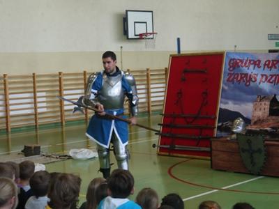 Podczas pokazu uczniowie mieli okazję zobaczyć żywą lekcję historii, obyczaje i kulturę średniowiecza. Byli świadkami zapierających dech w piersiach pojedynków. Podczas "próby miecza" uczestnicy pokazu mogli osobiście przekonać się, jaka siła potrzebna była do władania mieczem. Zobaczyli ekwipunek i uzbrojenie rycerskie oraz narzędzia tortur.