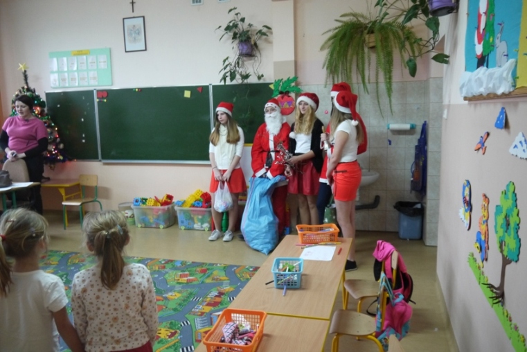 Wielka radość, szczególnie zauważalna na twarzach najmłodszych dzieci, uczniów podstawówki świadczy że pomysł był trafiony. Nasi koledzy i koleżanki ale również nauczyciele oraz pracownicy obsługi sami mogli wybrać prezent dla siebie z wielkiego worka Świętego Mikołaja.