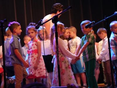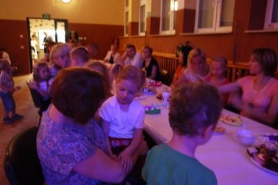Po części artystycznej dzieci wręczyły swoim rodzicom upominki, a następnie zaprosiły mamusie i tatusiów do wspólnego tańca. Na koniec wszyscy usiedli do słodkiego poczęstunku.