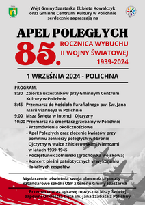 1 września 2024 roku w Polichnie odbył się uroczysty Apel Poległych, połączony z 85. rocznicą wybuchu II wojny światowej. Wydarzenie to było wyjątkową okazją do uczczenia pamięci tych, którzy oddali swoje życie za Ojczyznę. W uroczystościach wzięli udział uczniowie Szkoły Podstawowej...