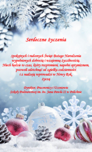W niedzielę 07 stycznia 2024r. na zaproszenie księdza proboszcza Henryka Jargiło, społeczność naszej szkoły zaprezentowała jasełka bożonarodzeniowe w Kościele Parafialnym w Polichnie. W ten sposób przekaz płynący z przedstawienia miał szansę dotrzeć do szerszej publiczności, którą...