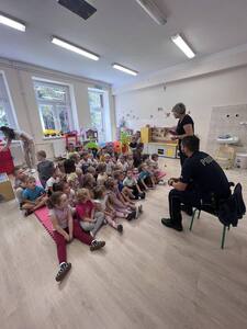 Wrzesień to najlepszy czas aby przypomnieć wszystkim o bezpieczeństwie. Wraz z rozpoczynającym się rokiem szkolnym, każdy z nas jest częstszym uczestnikiem ruchu drogowego. Dlatego też dziś gościliśmy w oddziałach przedszkolnych Funkcjonariuszy Policji z KPP w Kraśniku Pana dzielnicowego...