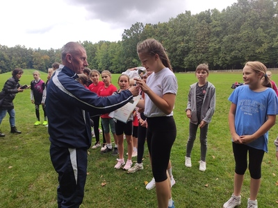 Rozpoczynamy zmagania sportowe w nowym roku szkolnym. Dziewczęta z kl. IV i V rewelacyjnie zaprezentowały się w powiatowych sztafetowych biegach przełajowych zajmując 3 miejsce. Mamy pierwszy puchar.