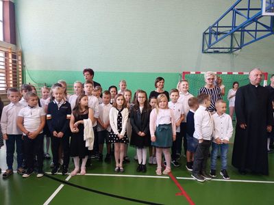 1 września 2022 r. o godzinie 9.00 uroczystą Mszą Świętą rozpoczęliśmy nowy rok szkolny 2022/2023. Po zakończonej Eucharystii uczniowie wraz z rodzicami oraz nauczycielami udali się do szkoły. W hali sportowej wszystkich zgromadzonych powitała Pani dyrektor – Marta Plichta. Ciepłe słowa powitania i życzeń skierował również do uczniów i nauczycieli Wójt Gminy Szastarka Pan Artur Jaskowski.