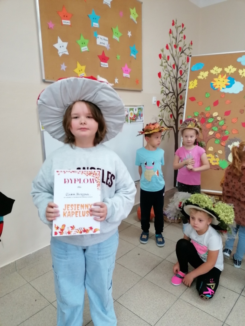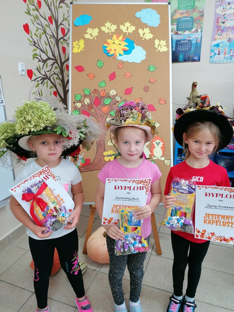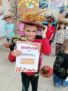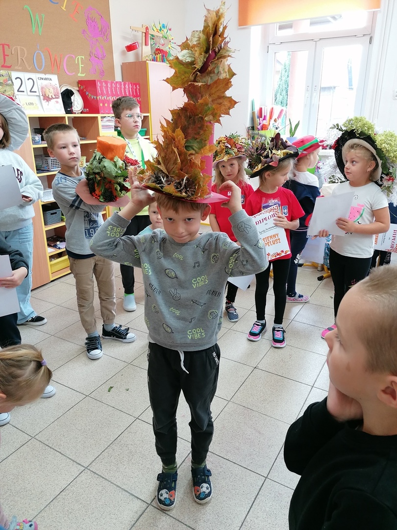 Jesień jest niezwykle barwną i piękną porą roku. To także czas, kiedy otaczająca nas przyroda pokazuje swoje kolorowe oblicze, a ciepłe i słoneczne dni zachęcają do spacerów i podziwiania uroków jesiennego krajobrazu. By na dłużej zatrzymać i móc podziwiać tą niepowtarzalną atmosferę jesieni, nasze przedszkole zorganizowało konkurs pt. ”Jesienny kapelusz”. Jego celem było rozbudzenie wyobraźni i kreatywności u dzieci oraz promowanie aktywnych form spędzania czasu wolnego w gronie rodzinnym. Uczestnicy konkursu mieli za zadanie przygotować kapelusz w formie przestrzennej z materiałów przyrodniczych związanych z aktualną porą roku.