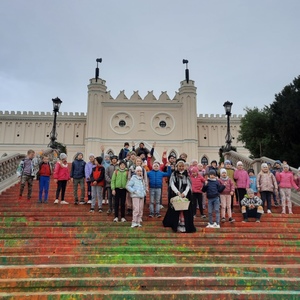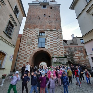 Następnie przejechaliśmy do Lublina gdzie najpierw zwiedziliśmy Muzeum Wsi Lubelskiej a później na Placu Zamkowym spotkaliśmy się z panią przewodnik, z którą odbyliśmy krótki spacer po lubelskiej starówce. Dzięki jej opowieściom dowiedzieliśmy się między innymi skąd Lublin wziął swoją nazwę, oraz dlaczego godłem miasta jest koziołek.