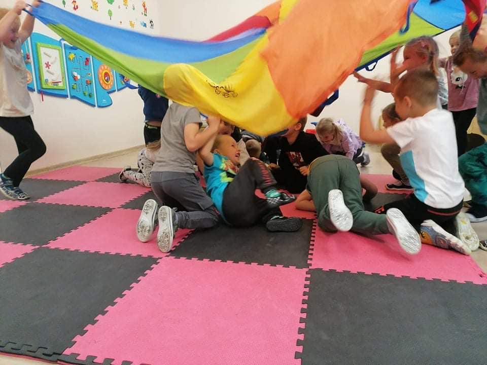 Dnia 20 września w naszym przedszkolu świętowaliśmy Dzień Przedszkolaka. Z tej okazji dzieci z zerówki oraz 5 latki wybrały się do sali zabaw "Dżungla" w Kraśniku Fabrycznym. Maluszki bawiły się w przedszkolu przy ulubionej muzyce i poczęstunku. Po powrocie z sali zabaw i obiedzie, wszystkie przedszkolaki bawiły się dalej, wspólnie na sali zabaw, z ulubionymi piosenkami, chustą i innymi rekwizytami. Zabawa była bardzo udana!