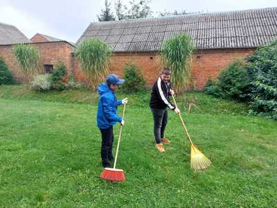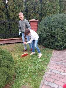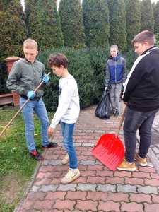 23 września klasa VII wraz ze swoją wychowawczynią panią Beatą Sokół- Rugałą, korzystając z pięknej słonecznej pogody, zabrali się za porządki wokół naszej szkoły. Wyposażeni w grabie, worki, rękawice, a przede wszystkim chęci, ruszyli do pracy.🧹🍂🧹 Przez cały ten czas towarzyszył im uśmiech, dobra zabawa, rozmowy i wzajemna pomoc.