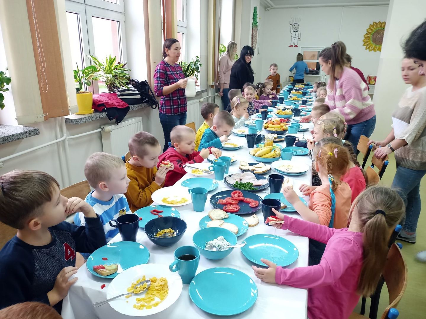 W dniach 7,8,9 listopada wszystkie dzieci małe i duże miały okazję rozpocząć dzień od pysznego i zdrowego śniadania. Kolejny raz nasza szkoła włączyła się do ogólnopolskiej akcji promującej wiedzę o zdrowym odżywianiu. Ma ona na celu uświadomienie uczniom i rodzicom, jak ważne jest śniadanie dla prawidłowego funkcjonowania organizmu, szczególnie dziecka. Dzięki niemu dzieci mają siłę i energię do nauki i zabawy oraz lepiej koncentrują się na wykonywanych zadaniach.
