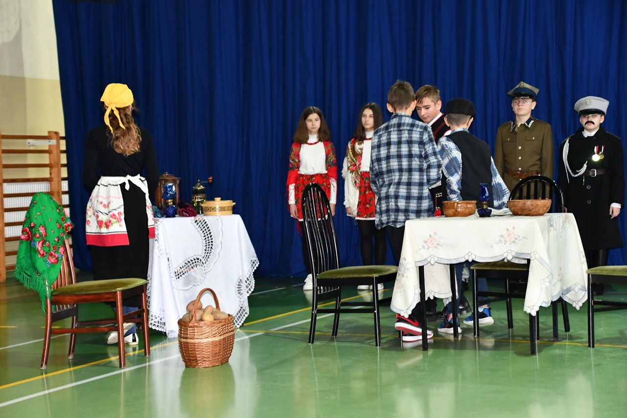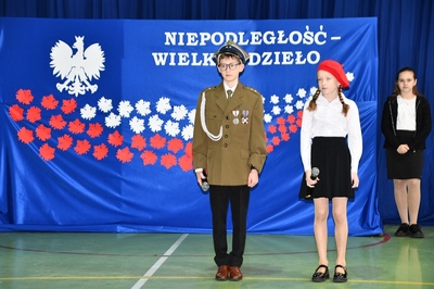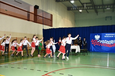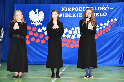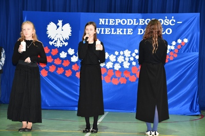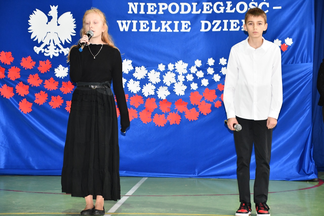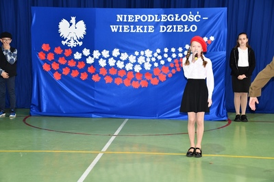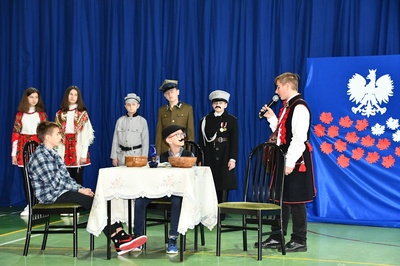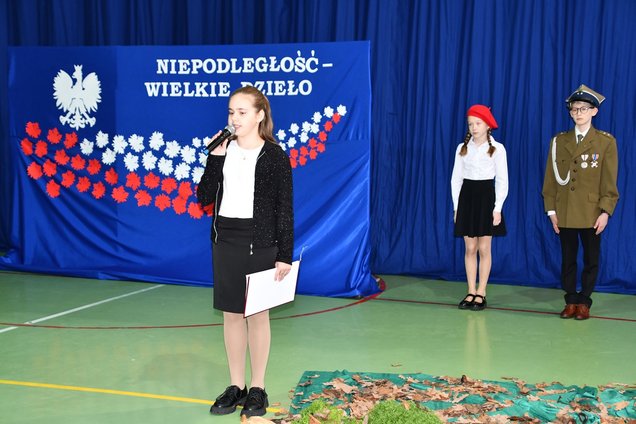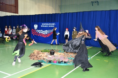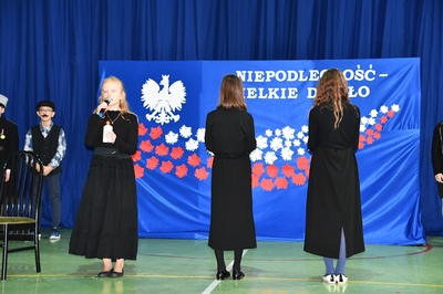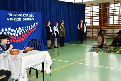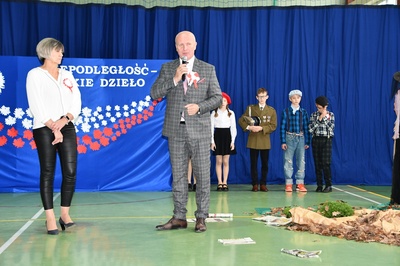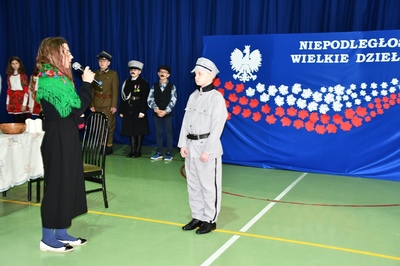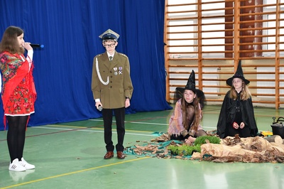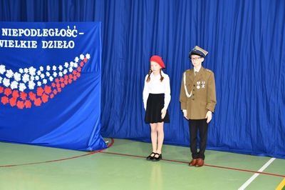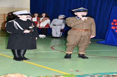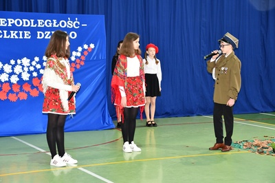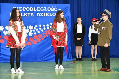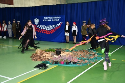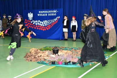 Pamięć o tych, którzy walczyli za wolność i niepodległość uczniowie wyrazili pięknym spektaklem pt. ,, Niepodległość – wielkie dzieło…’’, w którym odegrali role postaci historycznych - bohaterów i ofiar dążeń niepodległościowych oraz przedstawili wydarzenia ukazujące trud, cierpienia Polaków skazanych na tułaczkę, więzienia i te prowadzące do doniosłego momentu odzyskania niepodległości.