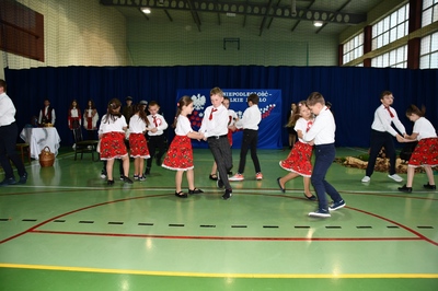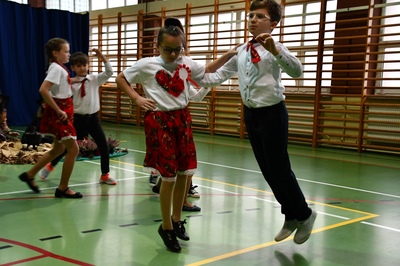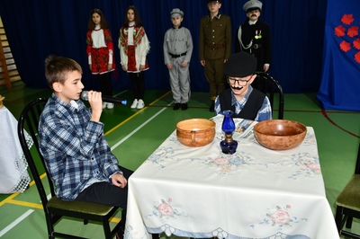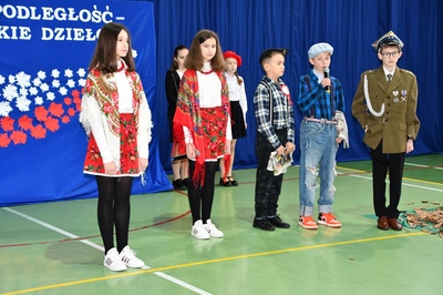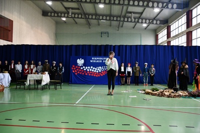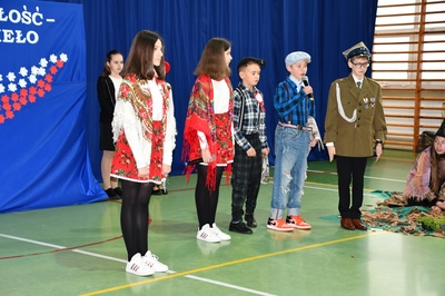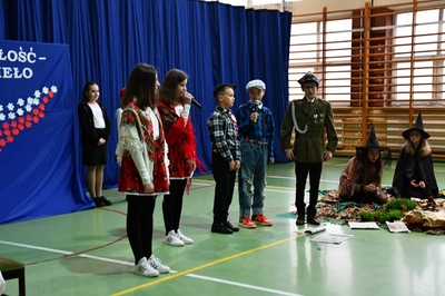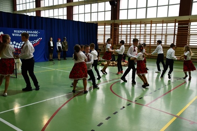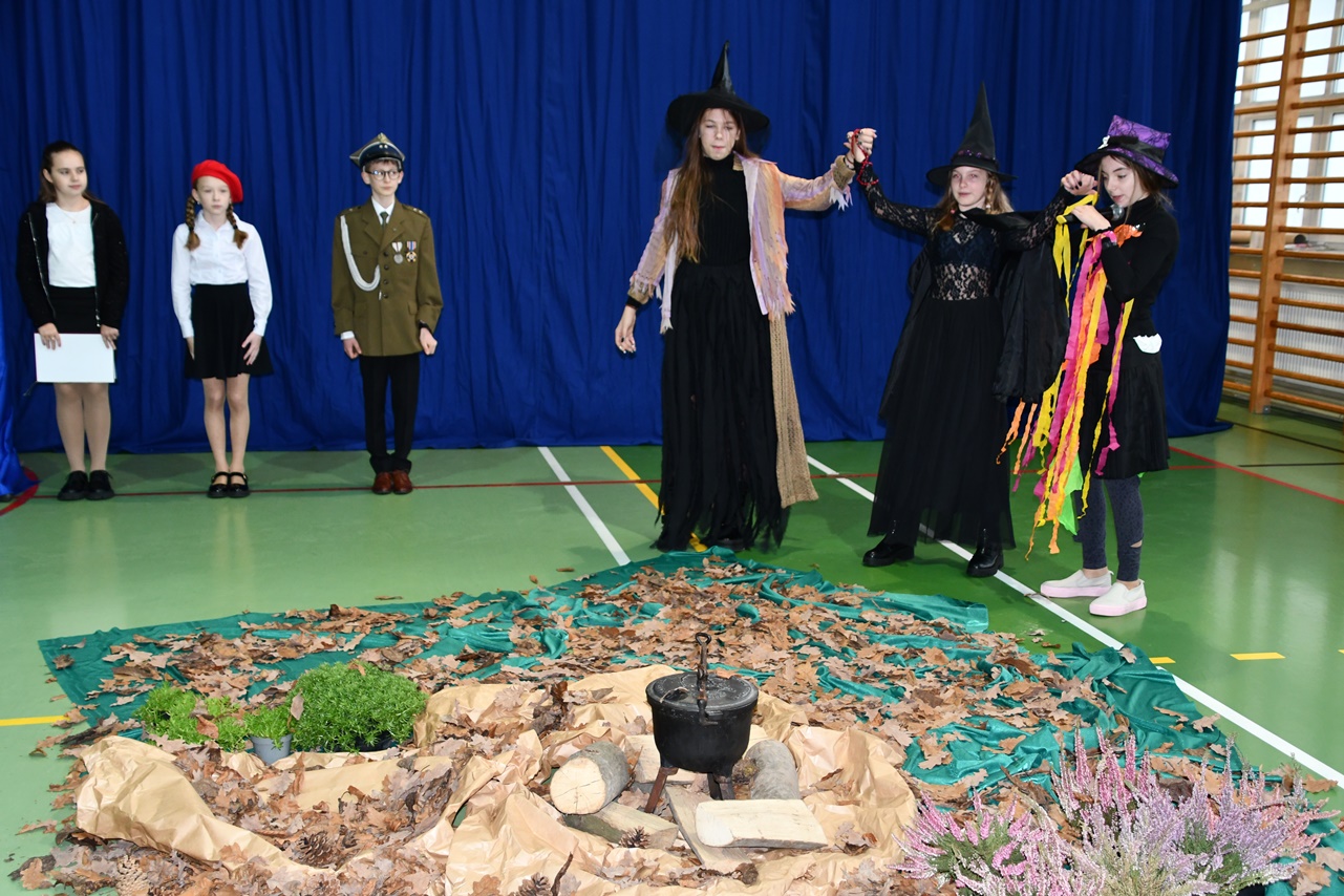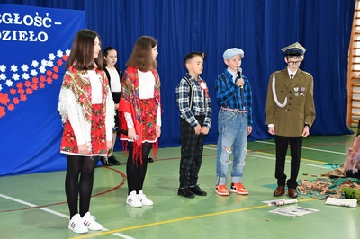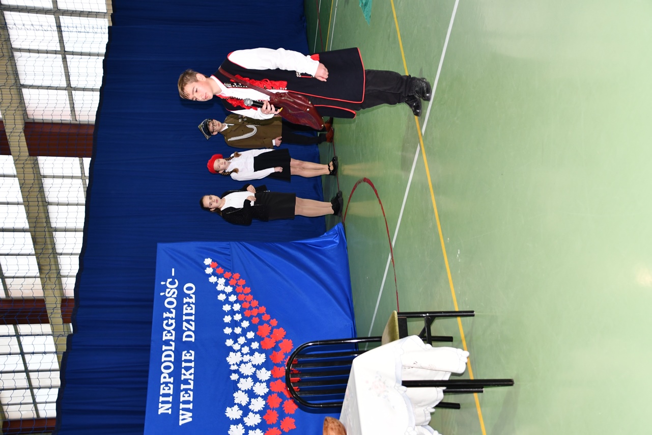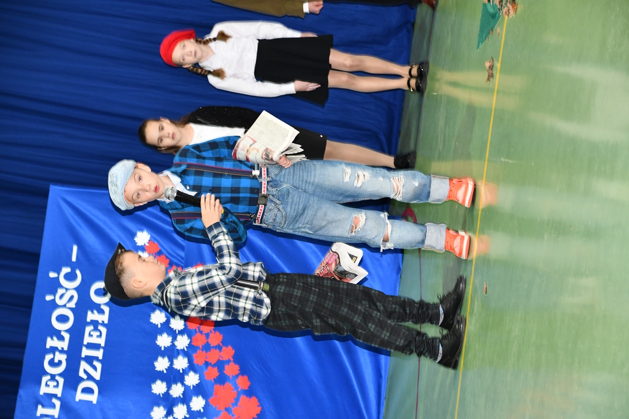 Pamięć o tych, którzy walczyli za wolność i niepodległość uczniowie wyrazili pięknym spektaklem pt. ,, Niepodległość – wielkie dzieło…’’, w którym odegrali role postaci historycznych - bohaterów i ofiar dążeń niepodległościowych oraz przedstawili wydarzenia ukazujące trud, cierpienia Polaków skazanych na tułaczkę, więzienia i te prowadzące do doniosłego momentu odzyskania niepodległości.