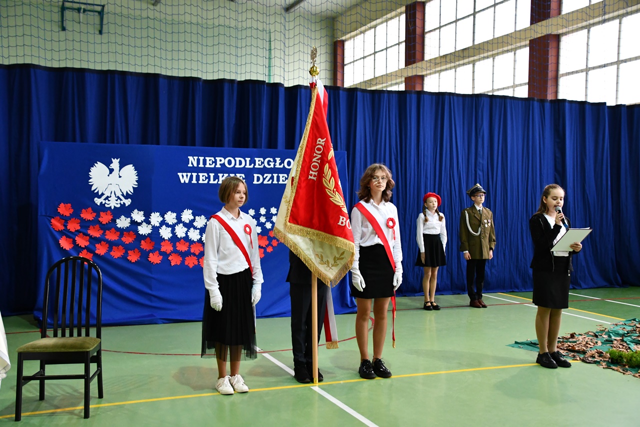 10 listopada uczciliśmy w naszej szkole, z udziałem zaproszonych gości: Panem Wójtem Gminy Szastarka Arturem Jaskowskim oraz Dyrektor Gminnego Zespołu Obsługi Placówek Oświatowych - Panią Moniką Łukasik 104 rocznicę Odzyskana przez Polskę Niepodległości.