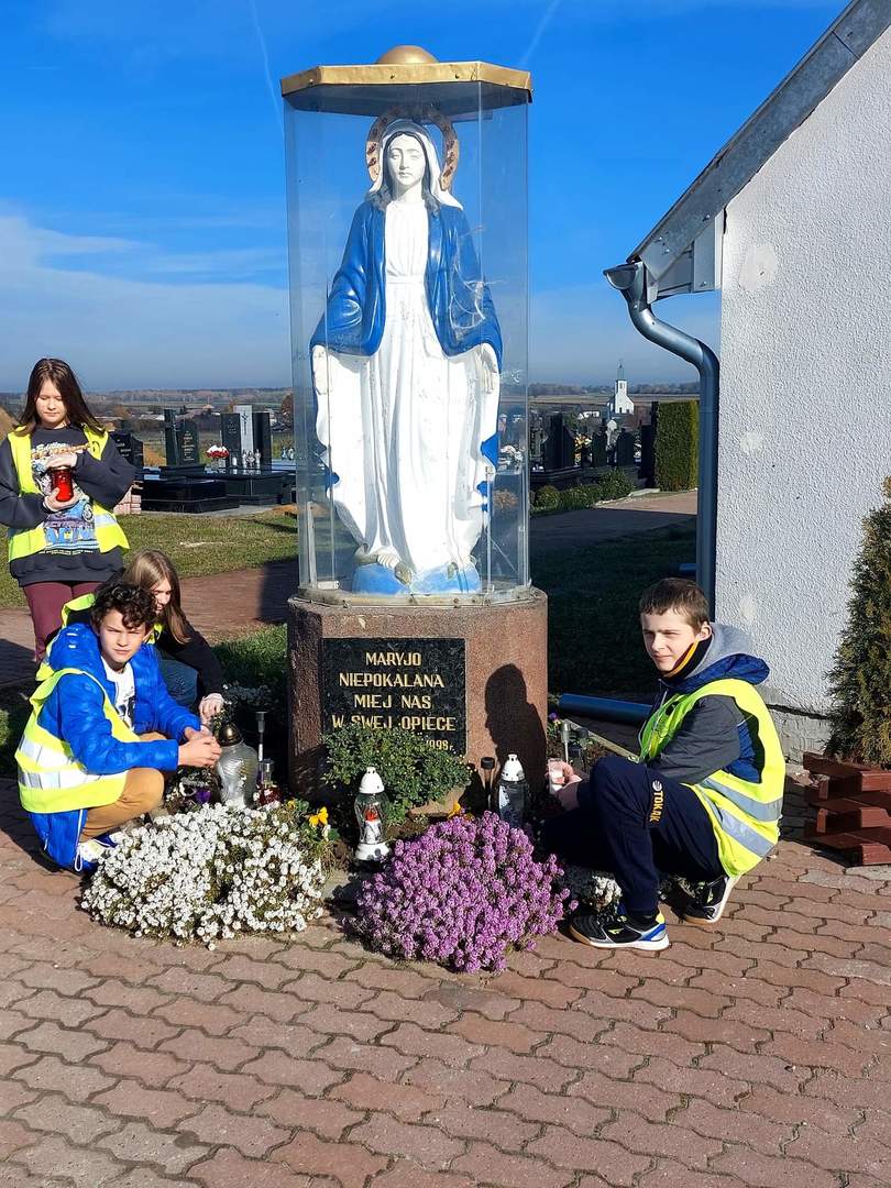 28 października uczniowie klasy VII wraz z wychowawczynią udali się na miejscowy cmentarz. Posprzątali mogiłę Żołnierzy poległych podczas I Wojny Światowej, pomnik Żołnierzy Września 1939 r. oraz pomnik nauczyciela Stanisława Żaczyńskiego.