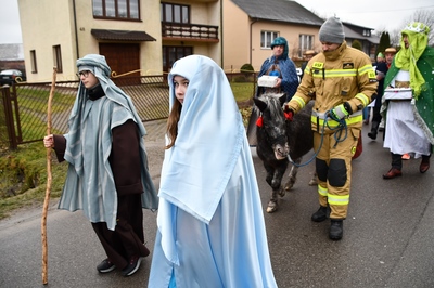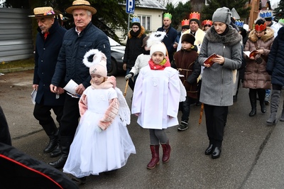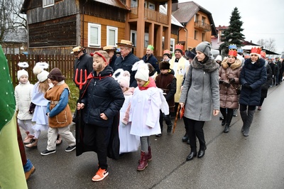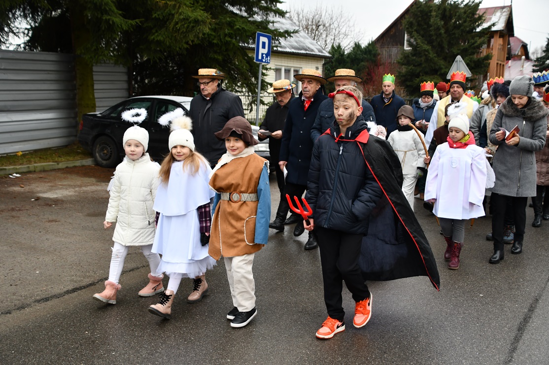 Orszak wyruszył z parkingu przed Publiczną Szkołą Podstawową im. św. Jana Pawła II w Polichnie. Zmierzając do kościoła na Mszę Świętą wszyscy uczestnicy, zaopatrzeni w śpiewniki i kolorowe korony, razem z Orkiestrą Dętą im. Jana Szabata, zespołem Majdaniacy oraz kapelą Kalina-Folk śpiewali piękne polskie kolędy.