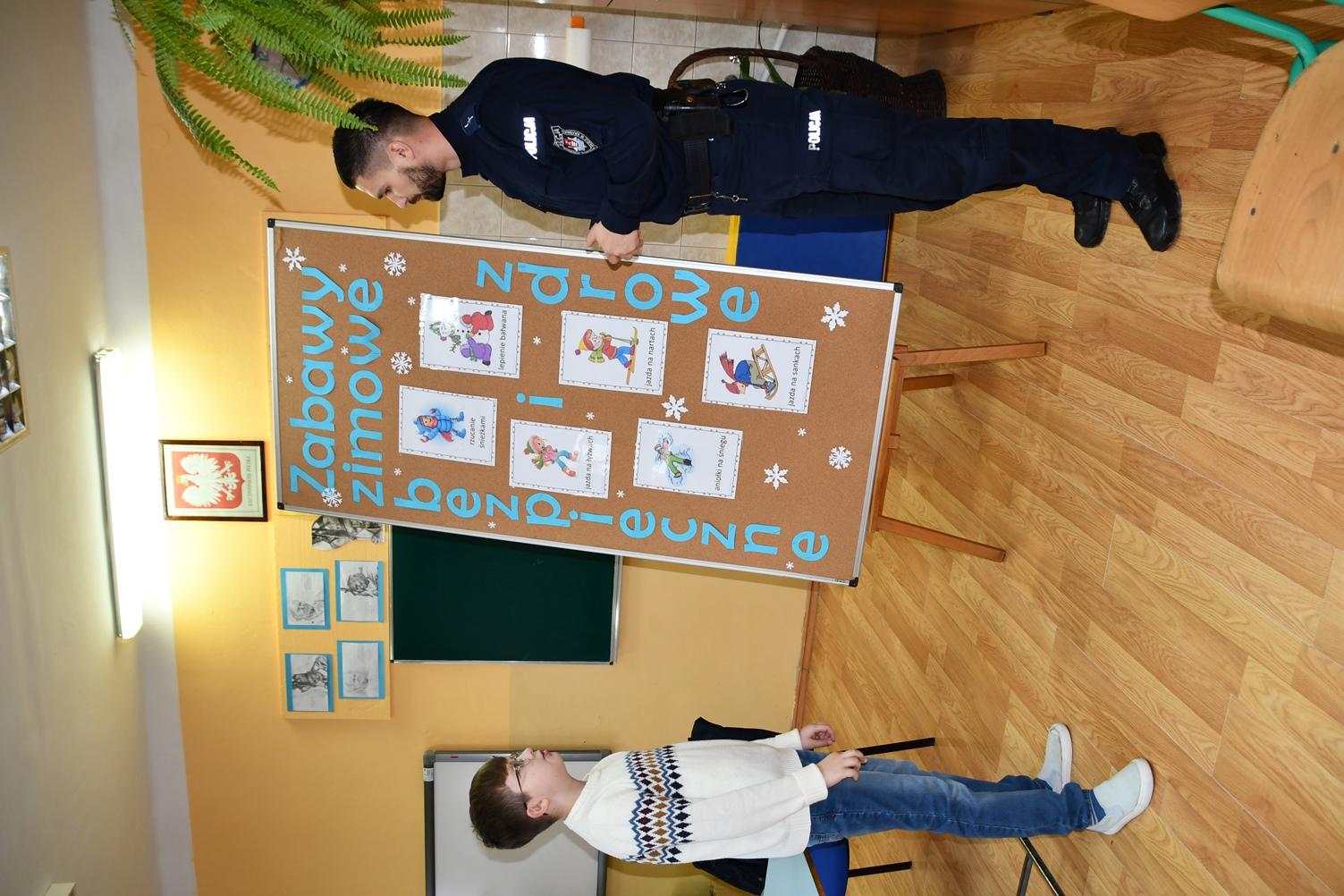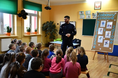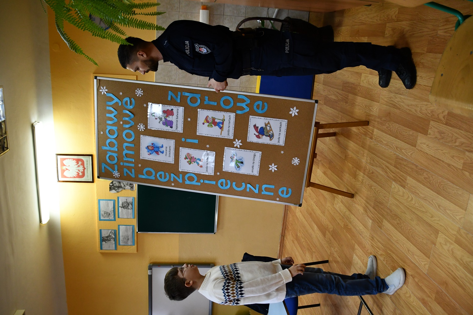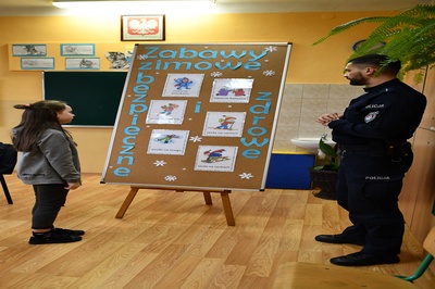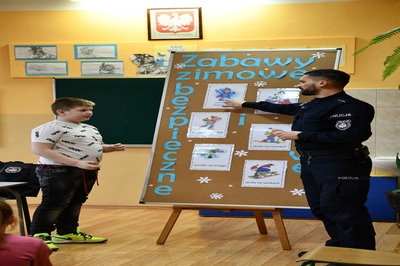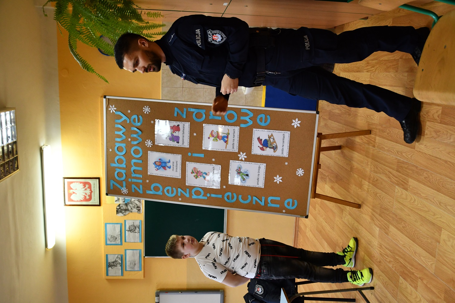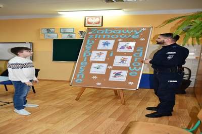 Drodzy uczniowie! Z okazji ferii zimowych w naszym województwie chcielibyśmy życzyć Wam wspaniałego i przede wszystkim bezpiecznego wypoczynku zimowego. Ferie zimowe są po to by odpoczywać, bawić się i rozwijać swoje zainteresowania, na które w okresie nauki niekiedy brakuje czasu. Mamy nadzieję, że zasady, o których podczas pogadanki przypomniał Wam policjant dzielnicowy – Pan Sebastian Janicki będą doskonałym kierunkowskazem gwarantującym bezpieczne spędzenie ferii zimowych.