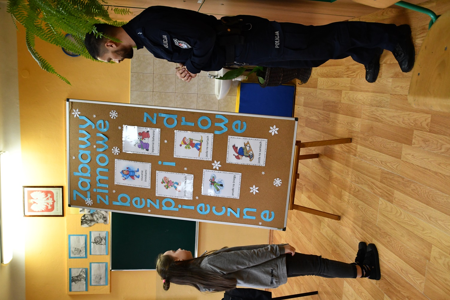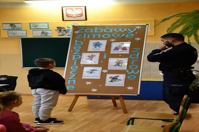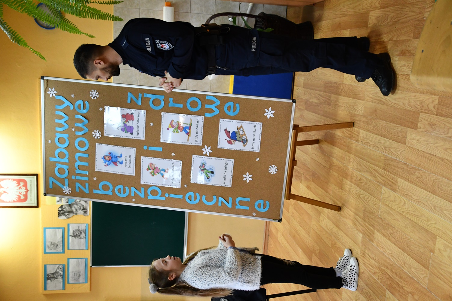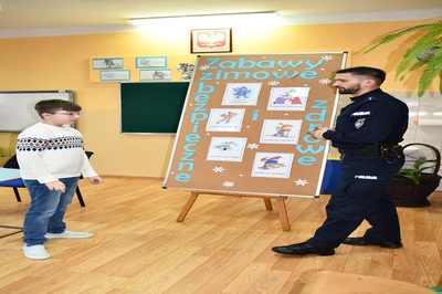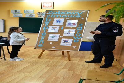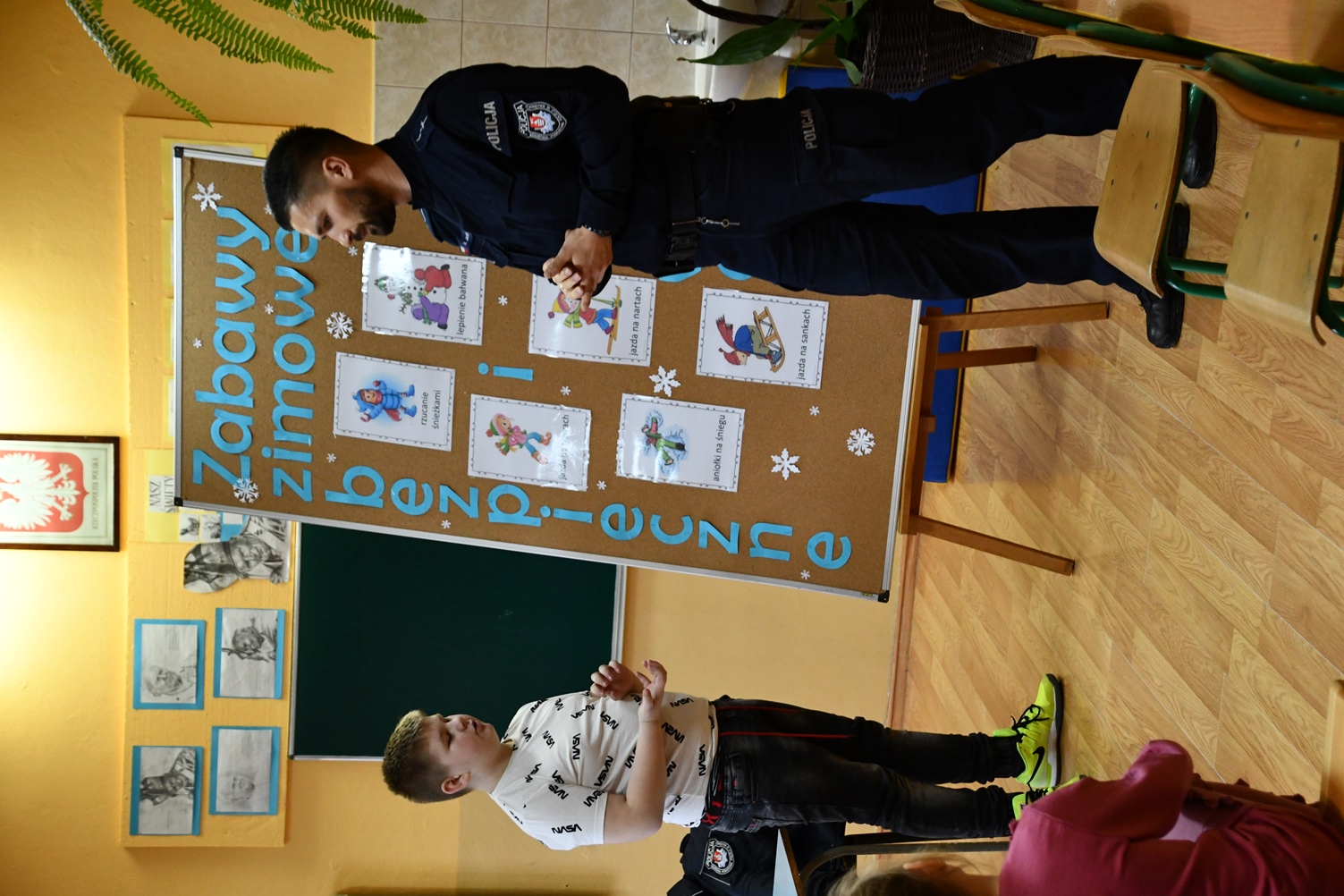 Drodzy uczniowie! Z okazji ferii zimowych w naszym województwie chcielibyśmy życzyć Wam wspaniałego i przede wszystkim bezpiecznego wypoczynku zimowego. Ferie zimowe są po to by odpoczywać, bawić się i rozwijać swoje zainteresowania, na które w okresie nauki niekiedy brakuje czasu. Mamy nadzieję, że zasady, o których podczas pogadanki przypomniał Wam policjant dzielnicowy – Pan Sebastian Janicki będą doskonałym kierunkowskazem gwarantującym bezpieczne spędzenie ferii zimowych.