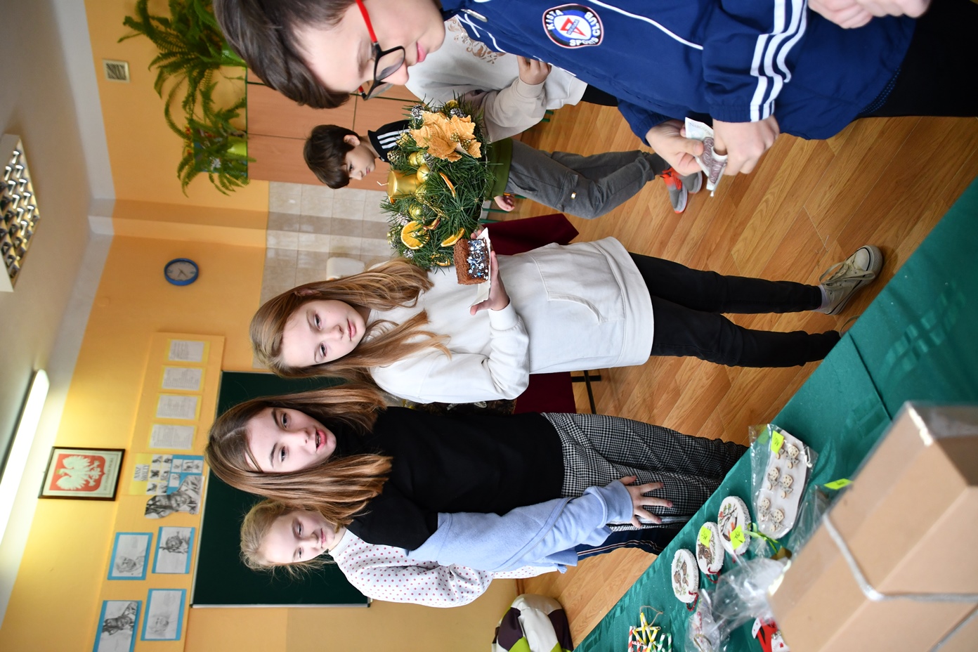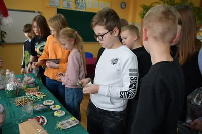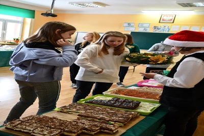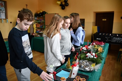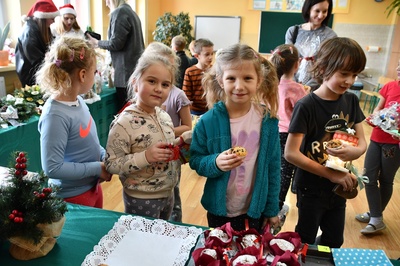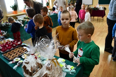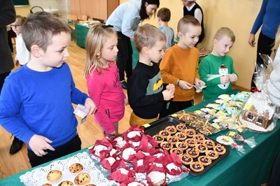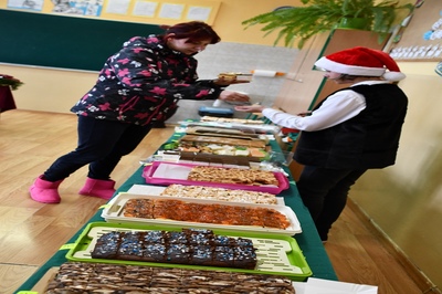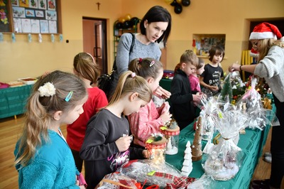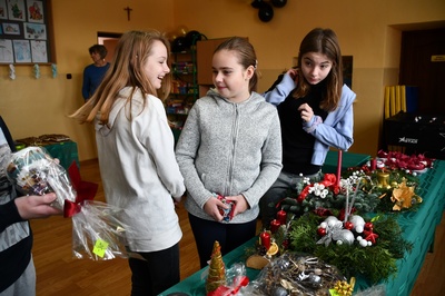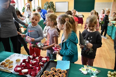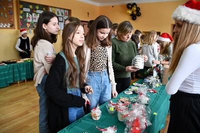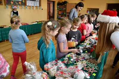 Kiermasz bożonarodzeniowy organizowany każdego roku w naszej szkole stał się już tradycją. Podczas kiermaszu sprzedawano wytwory pracy - głównie artykuły wykonane własnoręcznie przez uczniów, rodziców oraz nauczycieli, m.in.: rękodzieło - dekoracje i ozdoby świąteczne, a także wyroby cukiernicze. Kiermasz upłynął w przedświątecznej, miłej atmosferze. Cieszył się dużym powodzeniem zarówno wśród uczniów jak i rodziców. Wszystkim, którzy czynnie wzięli udział w przygotowaniach i przeprowadzeniu tego przedświątecznego wydarzenia, bardzo dziękujemy. Dzięki Wam kiermasz naprawdę się udał!!! Zebrane fundusze zostały przeznaczone na cele szkolne.