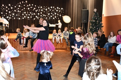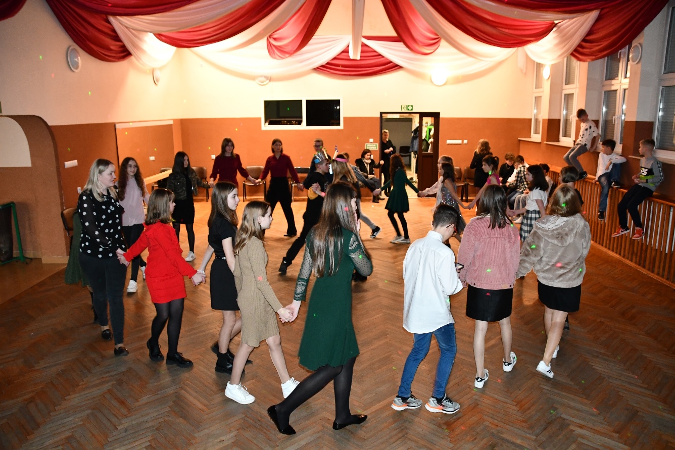 Dnia 4 lutego w GCK odbył się Bal Choinkowy. Mimo zimowej aury za oknem u nas panowała gorąca atmosfera i szalona zabawa. W grupie młodszej zabawy zorganizowały Panie animatorki, które przygotowały dla najmłodszych moc atrakcji tance, animacje oraz konkurencje podbiły serca dzieci. Niespodzianką były odwiedziny Myszki Miki, która ucieszyła wszystkich swoją obecnością każdy maluch mógł uwietrznić te chwile fotografią z bajkową postacią. Młodzież naszej szkoły bawiła się równie świetnie przy skocznej i rytmicznej muzyce. Dużym zainteresowaniem cieszyła się fotobudka w której powstały niewątpliwie pamiątki na długie lata. Chwile wytchnienia również były zapewnione, dzięki zangażowaniu rodziców dzieci mogły odpocząć przy pysznych przekąskach i orzeźwiających napojach. Serdecznie dziękujemy wszystkim za wspólną zabawę i z niecierpliwością czekamy na kolejną która już niebawem bo za rok 😉