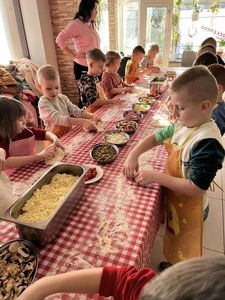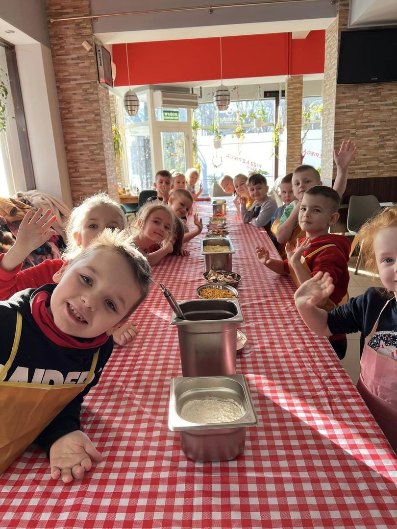 Dnia 08.02.23r Przedszkolaki ze starszych grup wybrały się na warsztaty z robienia pizzy. Dzieci dowiedziały się jak robi się pizze, każde mogło z rożnymi dodatkami zrobić swoją. Po pracy odbył się pyszny poczęstunek. Było smacznie.