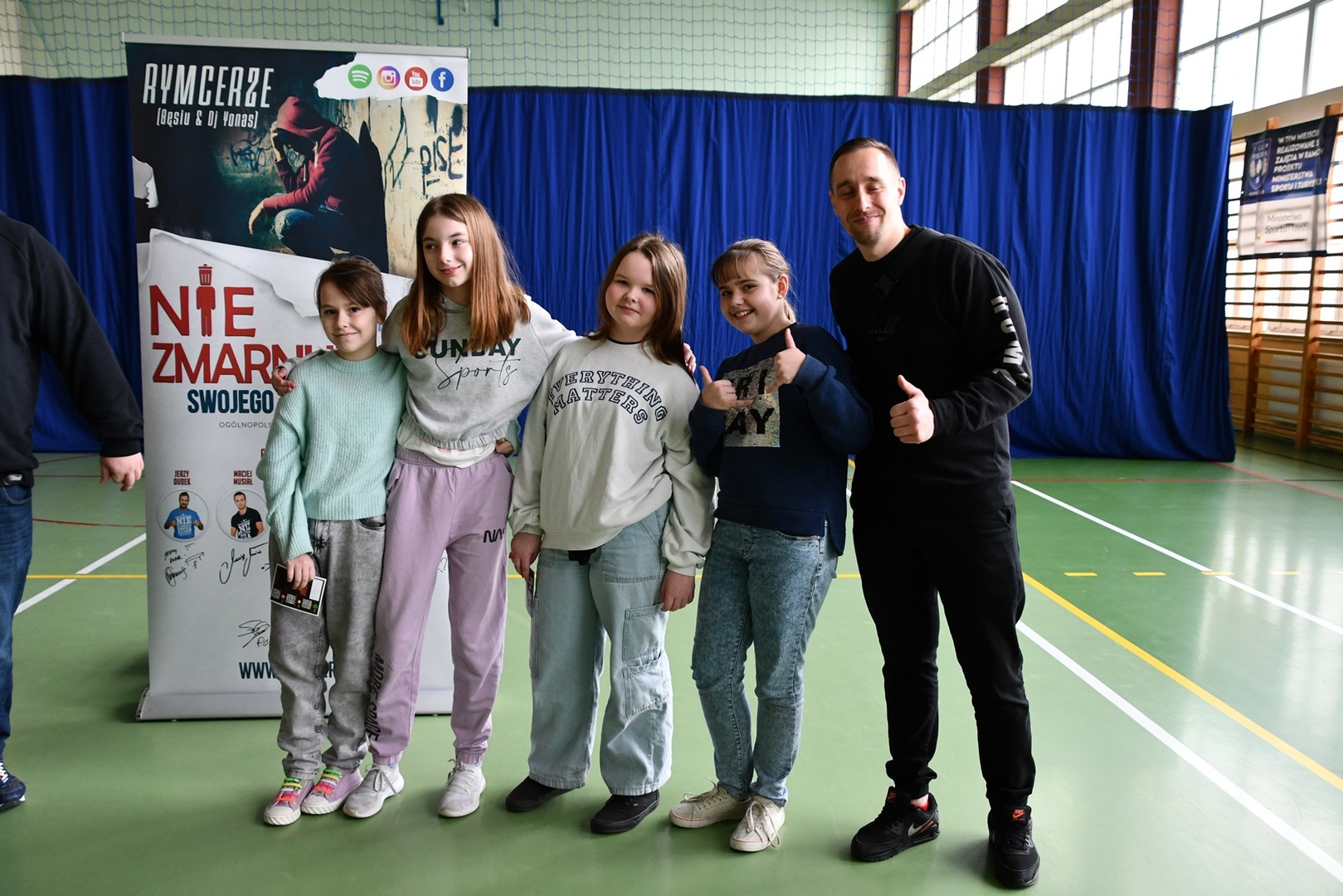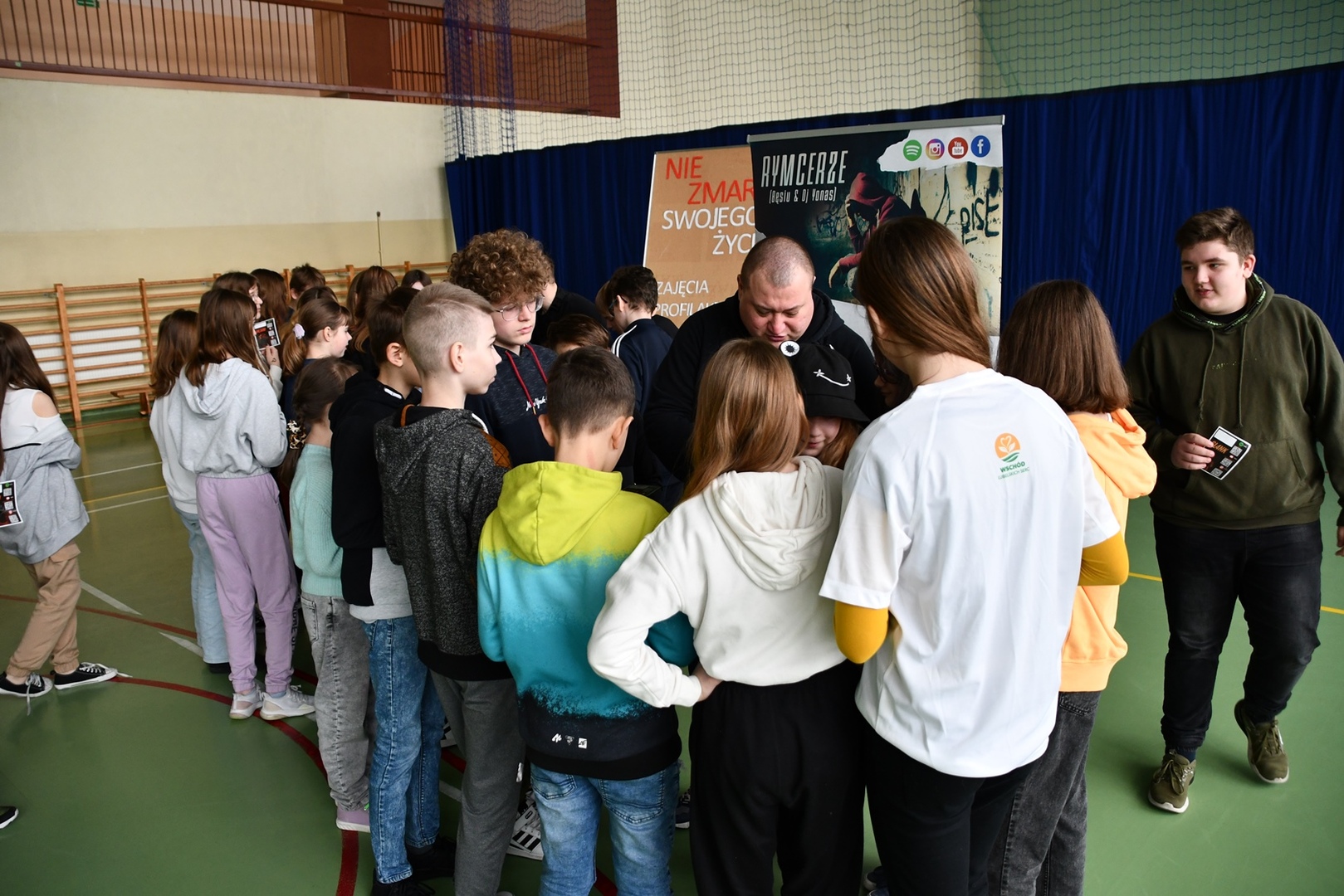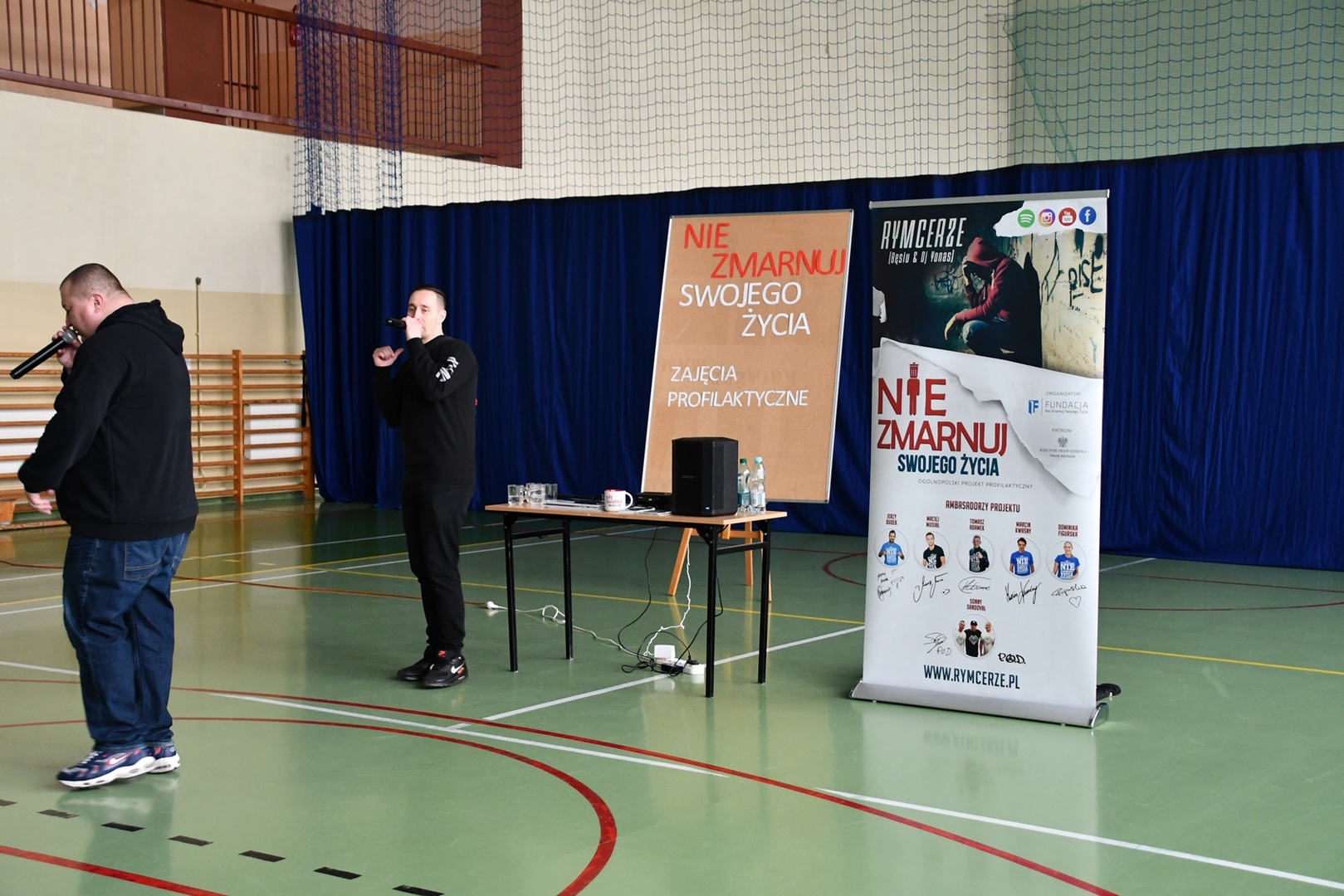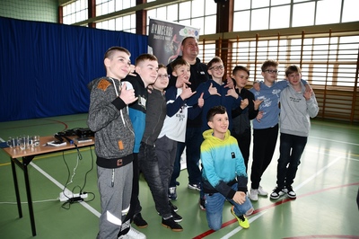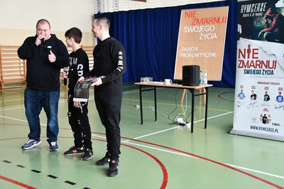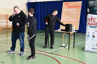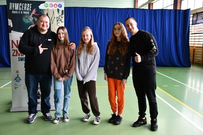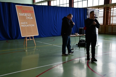 24 marca 2023r. gościliśmy w naszej szkole założycieli Fundacji ,,Nie zmarnuj swojego życia’’ - Łukasza Bęsia oraz Jonatana Blanka, którzy są autorami i prowadzącymi projektu profilaktycznego skierowanego do dzieci i młodzieży. Spotkanie połączone zostało z mini-koncertem hip-hopowym, w trakcie którego nasi goście ostrzegli uczniów przed konsekwencją brania używek i zachęcili do bycia sobą i do odkrywania swoich pasji.