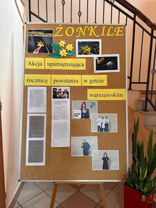 W naszej szkole wykonana została tablica upamiętniająca ten największy zryw zbrojny Żydów podczas II wojny światowej a zarazem pierwsze powstanie miejskie w okupowanej Europie, jaki  dokonał się 19 kwietnia 1943r. w Warszawie.