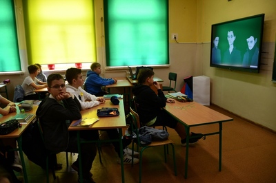 Ponadto we wszystkich klasach przeprowadzone zostały lekcje w oparciu o materiały edukacyjne dostosowane do potrzeb i możliwości dzieci i młodzieży, udostępnione szkole przez organizatorów akcji – muzeum POLIN. Nasi uczniowie mieli możliwość wysłuchać opowiadania uznanych autorek: Katarzyny Ryrych i Katarzyny Jackowskiej-Enemuo oraz obejrzeć wybrane z nadesłanej oferty filmy edukacyjne.