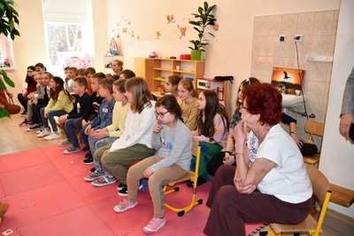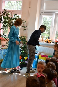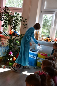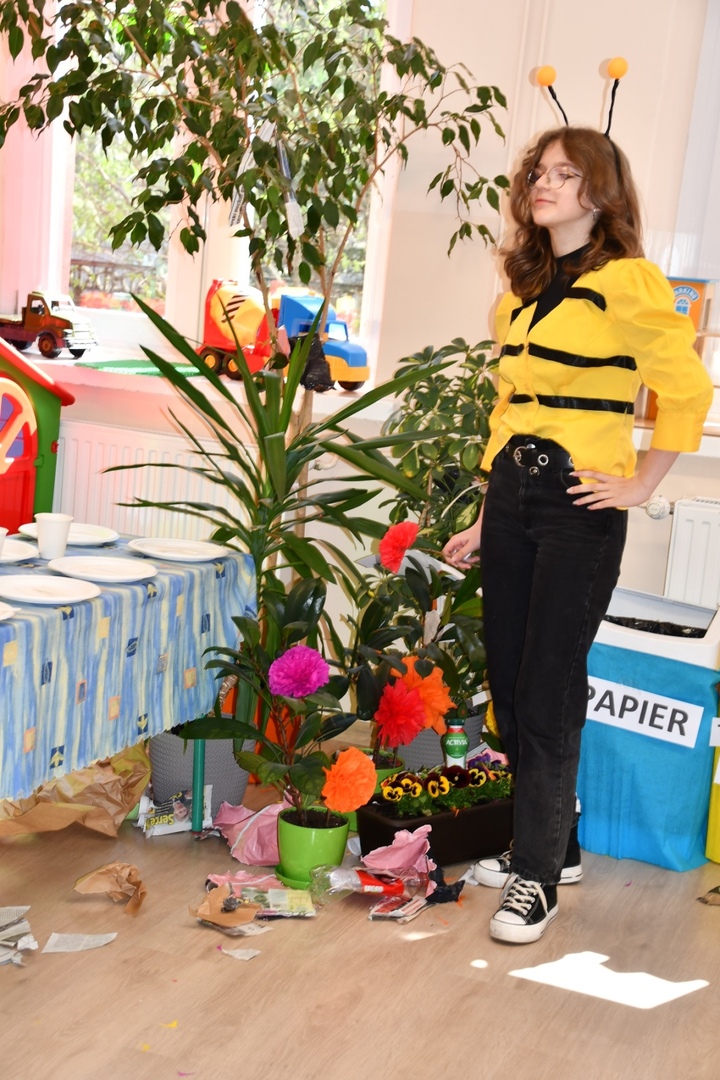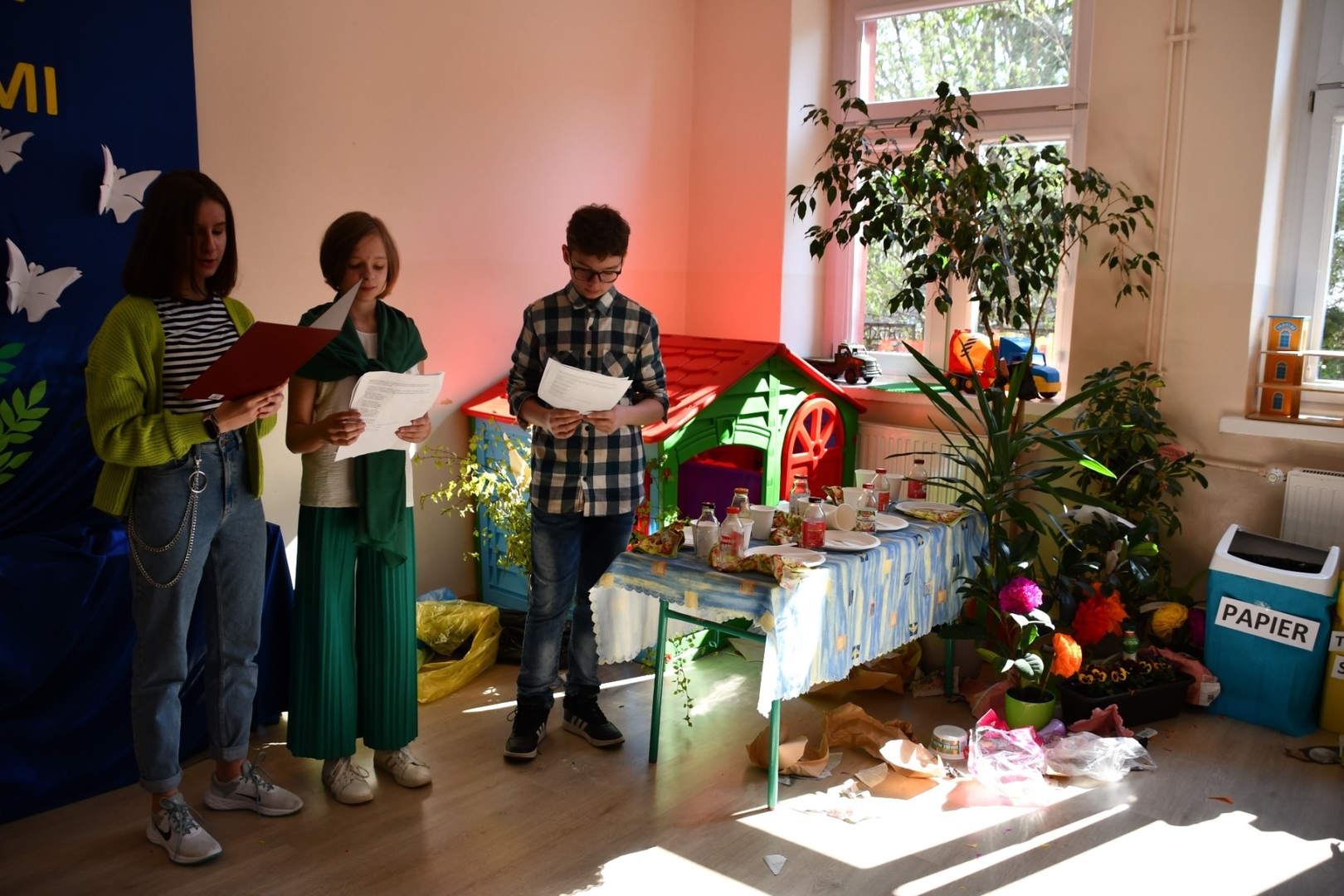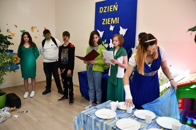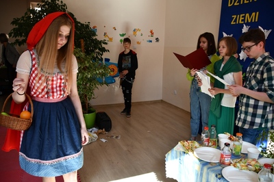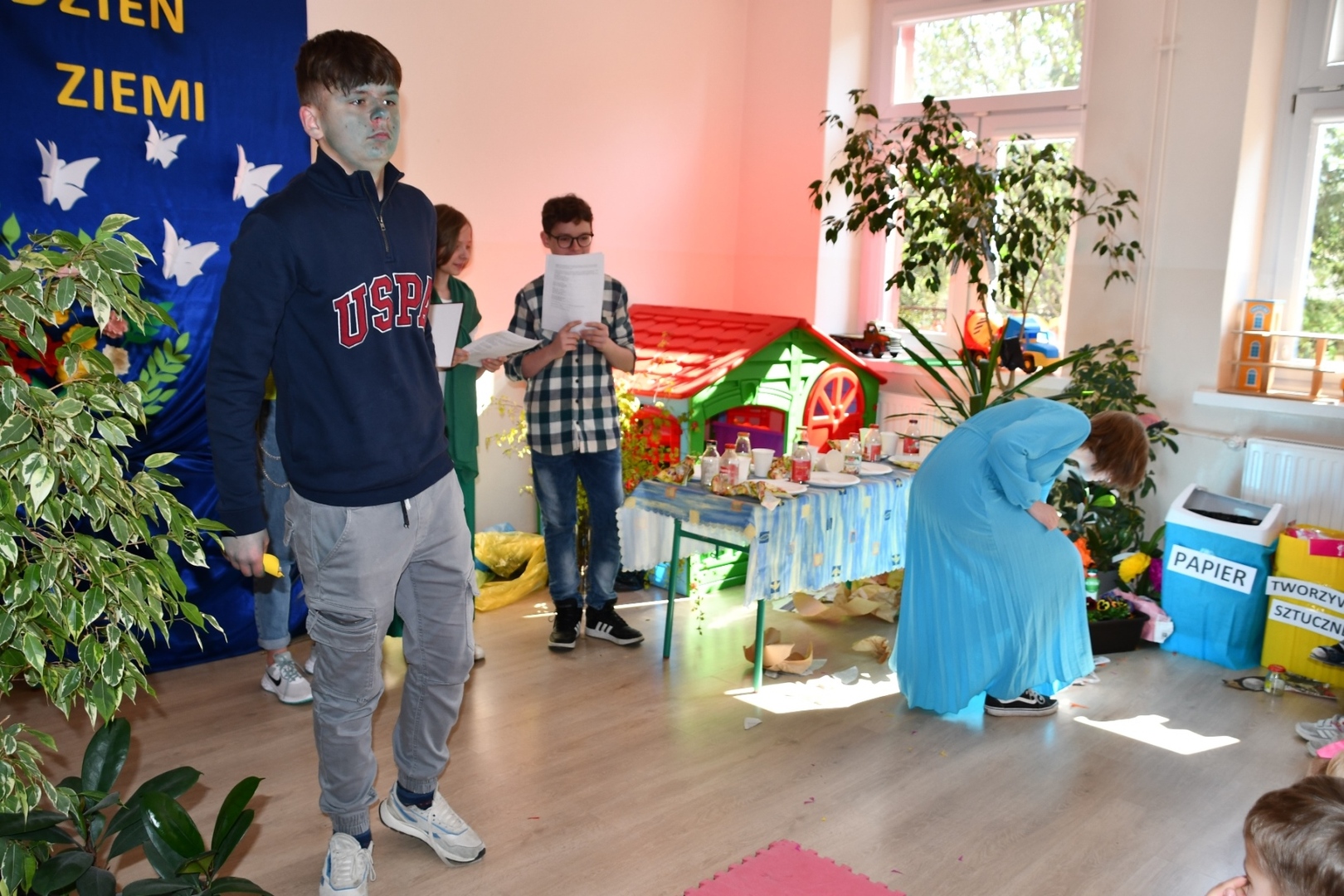 24 kwietnia 2023 roku w naszej szkole odbyło się przedstawienie związane z obchodzonym każdego roku 22 kwietnia Dniem Ziemi. Uczniowie klasy VII, wcielając się w postaci z bajek, takich jak Czerwony Kapturek, Królewna Śnieżka, Shrek i Fiona, Pinokio, Pszczółka Maja, Kubuś Puchatek i Królik oraz Smerfy, przybliżyli naszym najmłodszym uczniom jak dbać o naszą planetę.