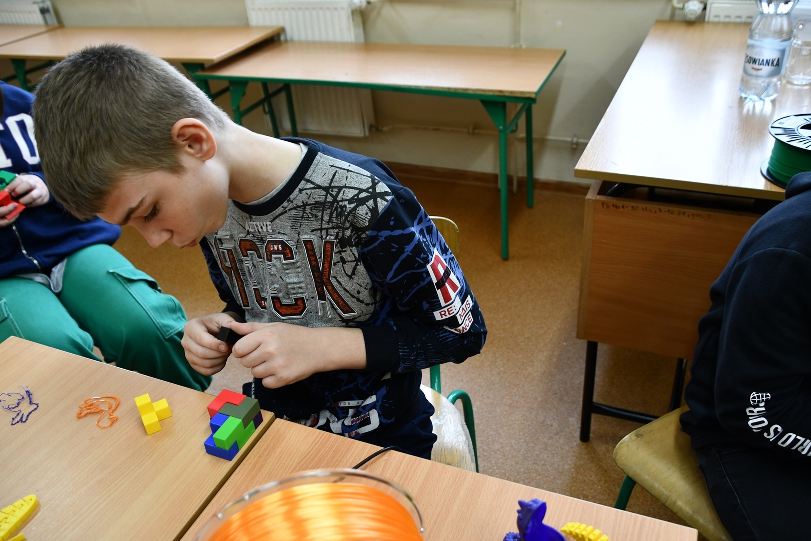 W ramach zajęć uczniowie zapoznali się z budową drukarki, własnościami wydruków oraz typami materiałów, z których można drukować. Obserwowali pracę drukarki 3D oraz efekt końcowy – gotowy wydruk. Uczniowie mieli również czas na zabawę różnymi klockami, łamigłówkami 3D i grami planszowymi wykonanymi za pomocą drukarki 3D.