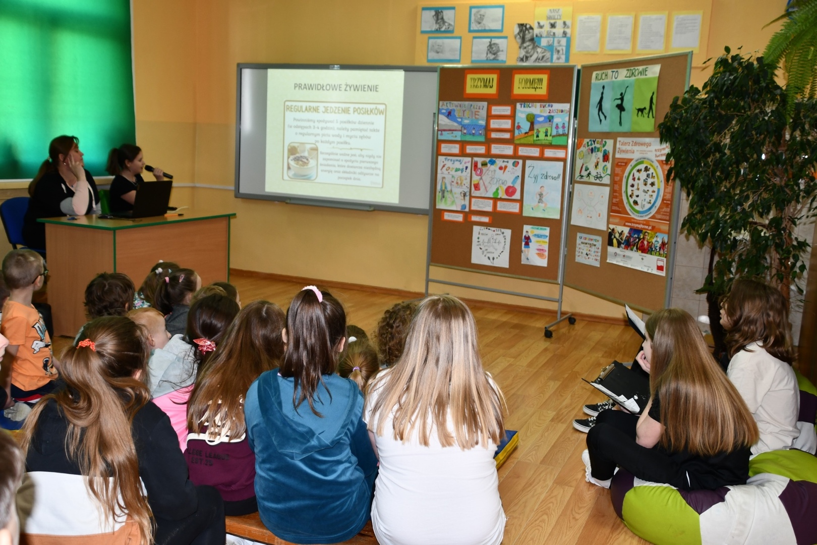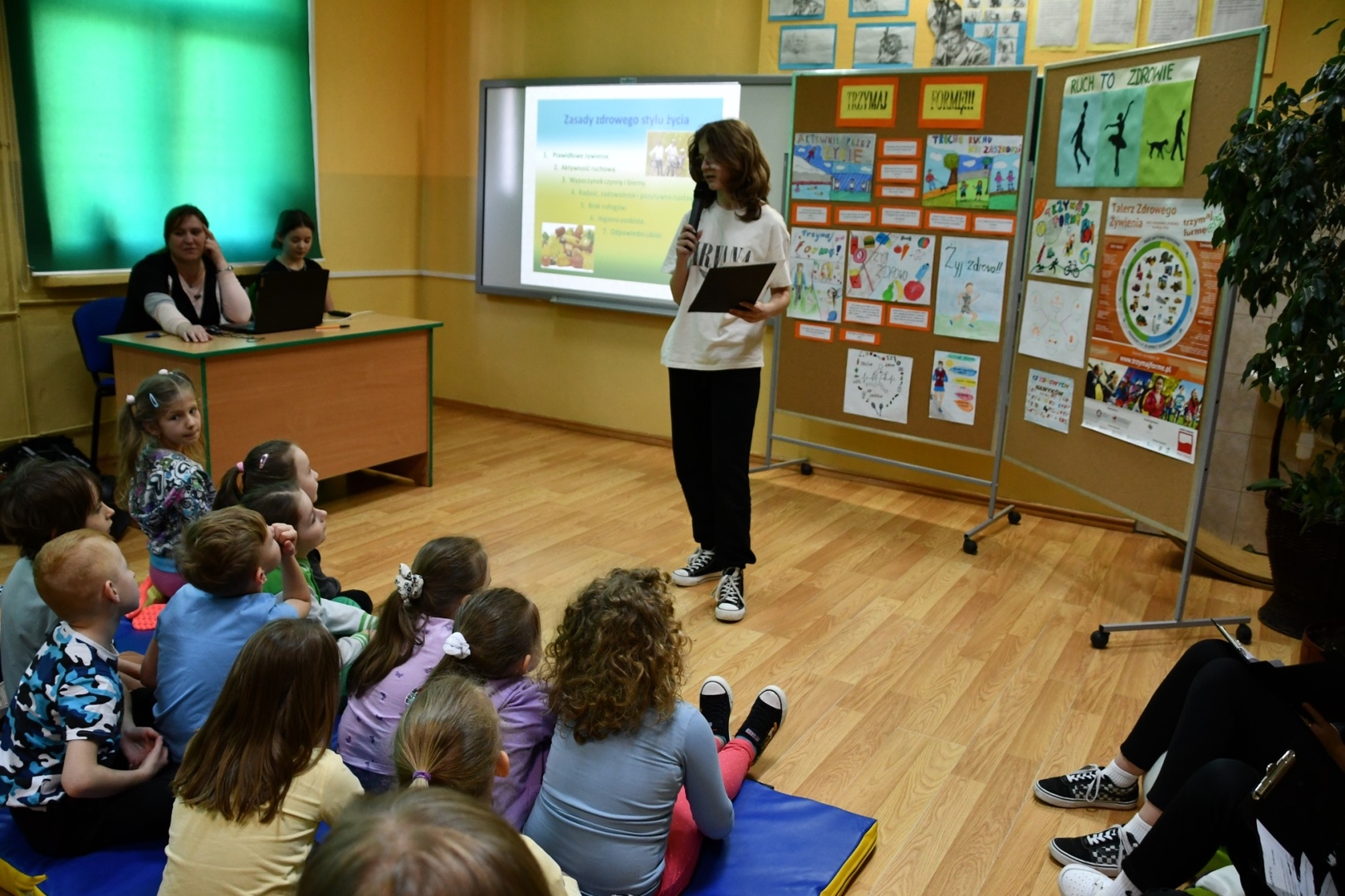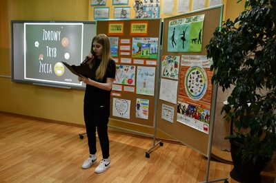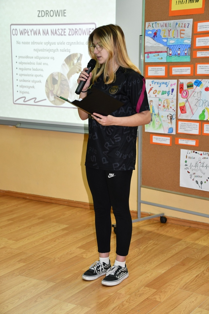Dnia 14.04.2023 r. w naszej szkole odbyło się spotkanie społeczności szkolnej, kończące projekt pt „Trzymaj formę”. Uczniowie klas V – VII przygotowali zarówno filmy jak i prace plastyczne dotyczące zdrowego stylu życia. Przedstawiona przez uczennice klasy VII prezentacja dotyczyła aktywności fizycznej i właściwego odżywiania się. Pokazywała jak ważne jest życie bez nałogów, zadowolenie, pozytywne nastawienie, higiena osobista i odpowiedni ubiór. Podczas spotkania podsumowującego ten projekt uczniowie naszej szkoły odpowiadali na pytania dotyczące zdrowego stylu życia. Mieli też okazję obejrzenia filmu pt. „Co robisz codziennie dla zdrowia?”. Tego typu przedsięwzięcia zachęcają wszystkich do dbania o właściwą kondycję psychiczną i fizyczną.