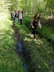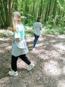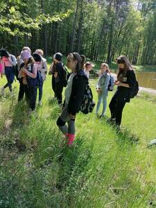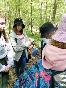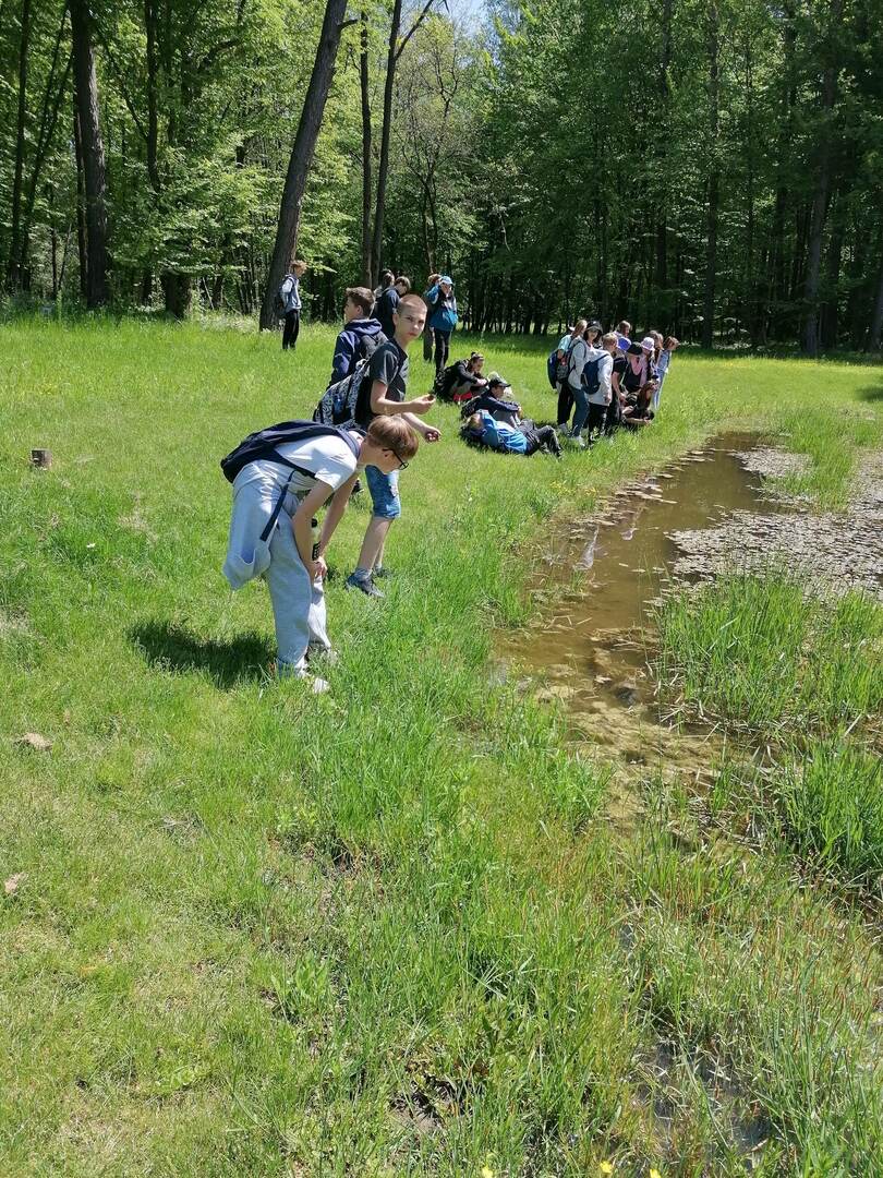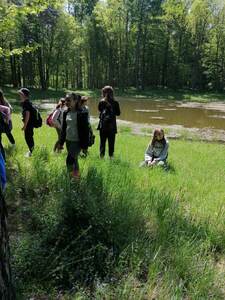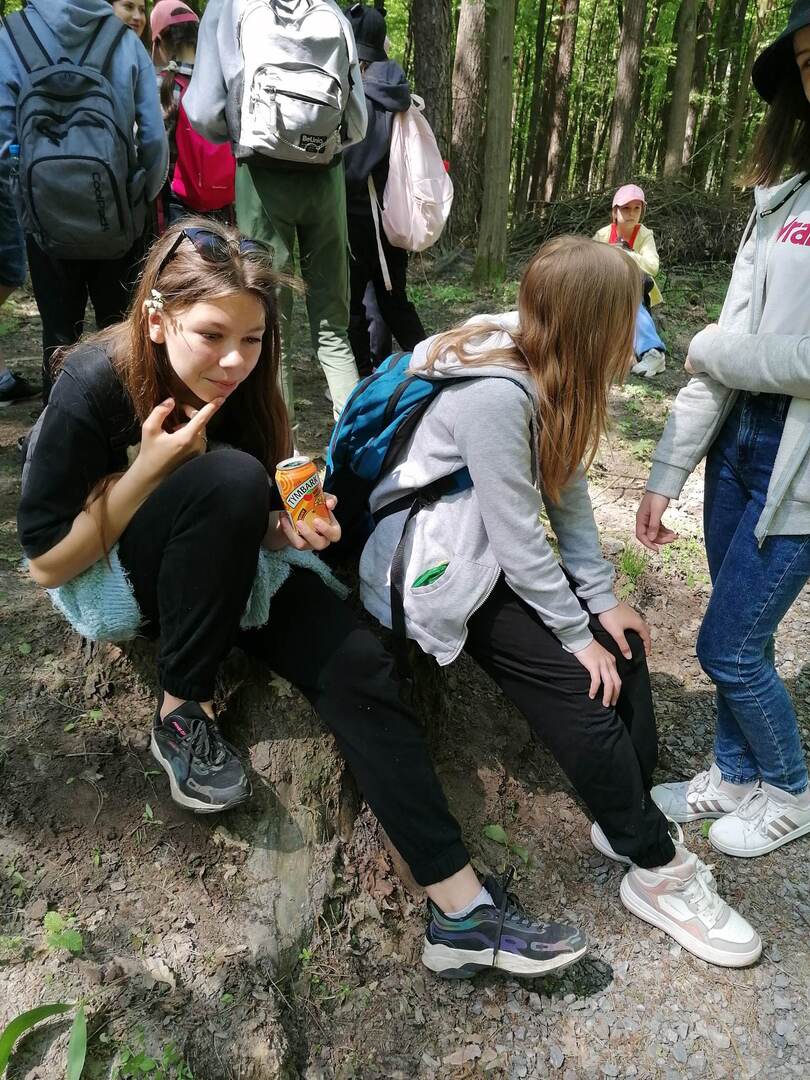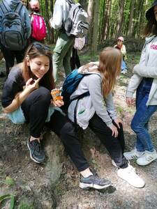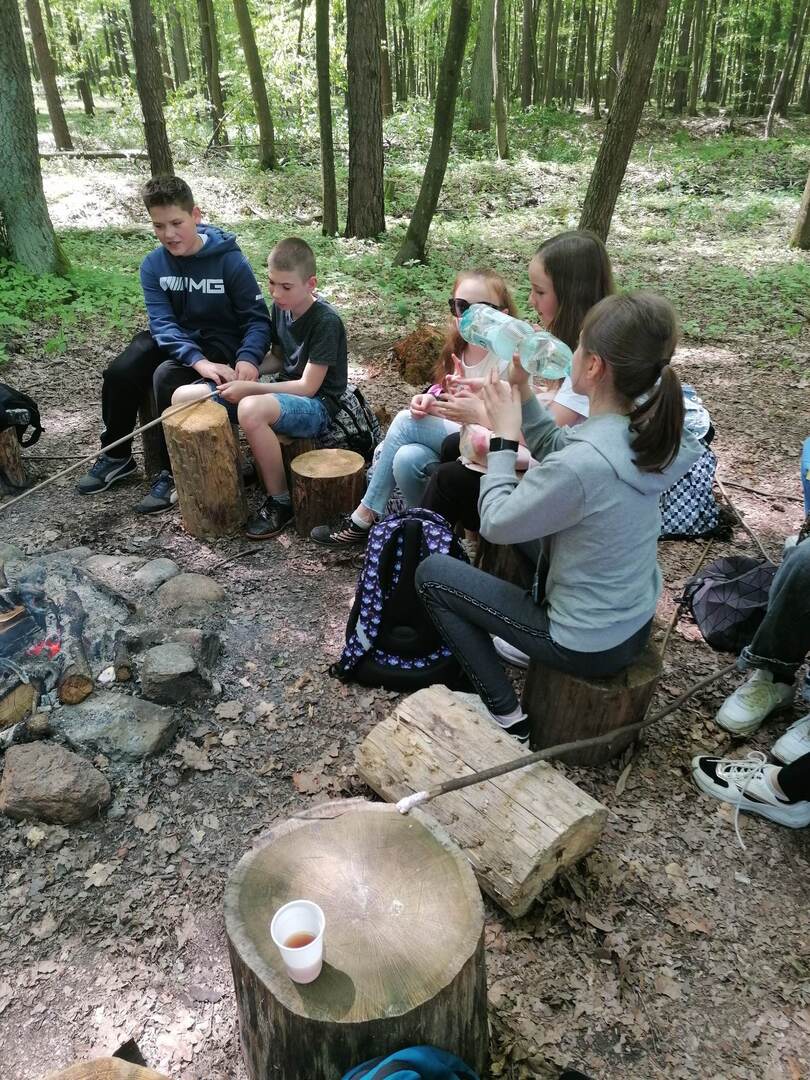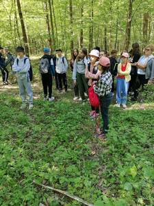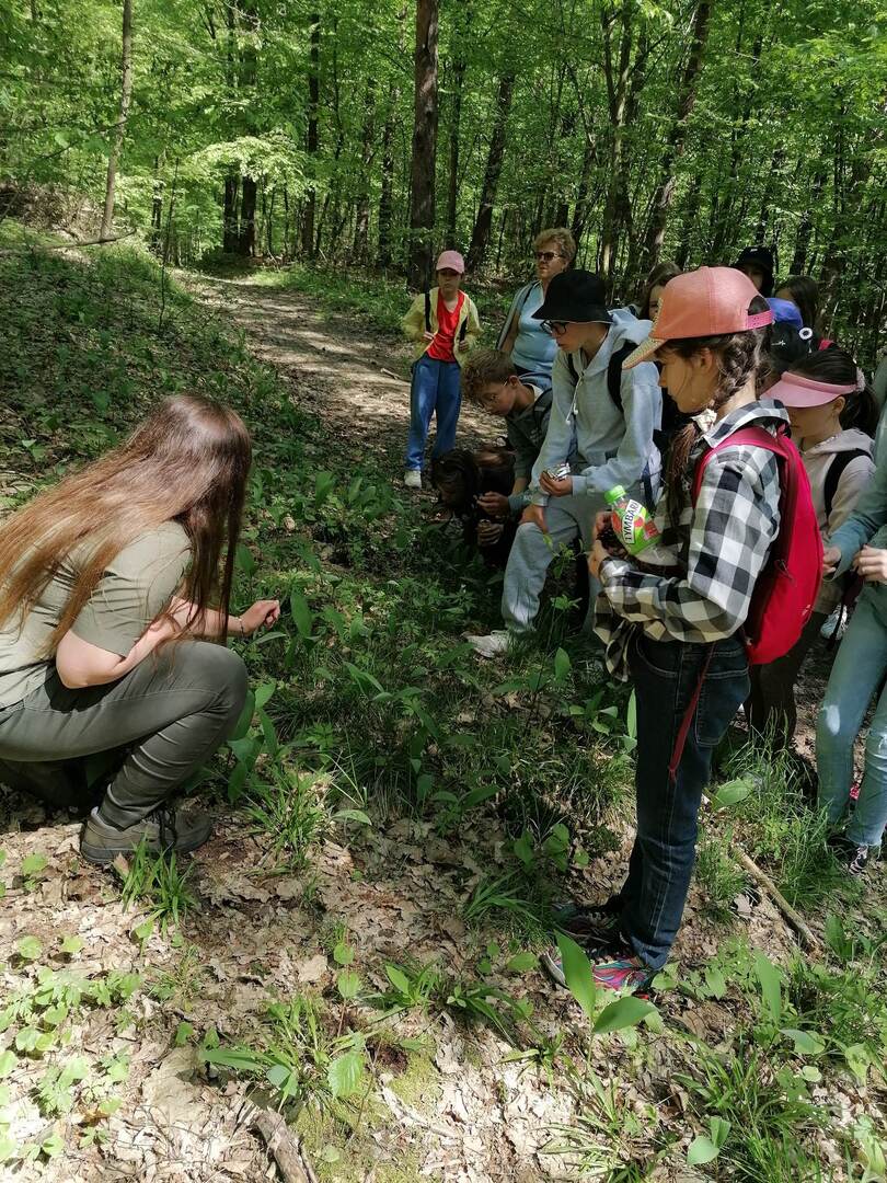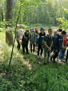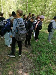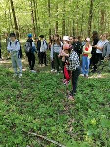 Na początku zajęć zapoznaliśmy się z przebiegiem trasy przyrodniczej oraz omówiliśmy zasady kulturalnego zachowania się w lesie. Podczas wędrówki mogliśmy zobaczyć z bliska młode okazy drzew, wchodzących w skład górnego piętra lasu grądowego (dąb szypułkowy, lipa drobnolistną, grab pospolity, klon zwyczajny). Na ścieżce edukacyjnej spotkaliśmy również osikę, brzozę brodawkowatą, czereśnię oraz wiązy - drzewa, które w lasach grądowych stanowią domieszkę w górnym piętrze lasu. Pięknie kwitło runo leśne, które odznacza się bogactwem gatunkowym i zróżnicowaniem sezonowym. Podziwialiśmy m.in. zawilca gajowego, gajowca żółtego, konwalię majową, dąbrówkę rozłogową, kopytnika pospolitego, narecznicę samczą, groszek wiosenny, konwalijkę dwulistną, szczawik zajęczy. Na trasie ścieżki przyrodniczej są też stare drzewa z dziuplami i obumierającymi gałęziami, a także drzewa stojące, lecz już martwe. Stanowią one środowisko życia licznych organizmów związanych pokarmowo lub środowiskowo z martwym drewnem. Wiele gatunków owadów żyje tylko na zamierających i martwych drzewach stojących. Przykładem mogą być gmachówki – duże leśne mrówki, które silnymi szczękami i ostrymi zębami drążą w drewnie korytarze tworząc oryginalne gniazda. W starych drzewach są też dziuple, które dają schronienie ptakom, ssakom i bezkręgowcom. Podczas zajęć mięliśmy okazję do poszerzenia wiedzy o lesie, jego mieszkańcach oraz o zasadach gospodarki leśnej. Wędrówkę leśnymi szlakami zakończyliśmy pieczeniem nad ogniskiem smakowitych kiełbasek.