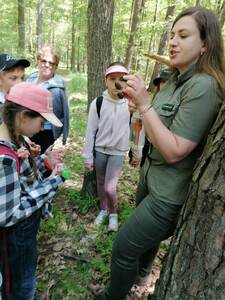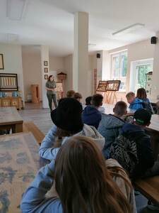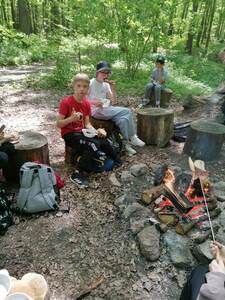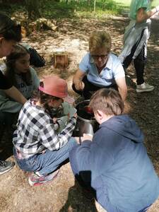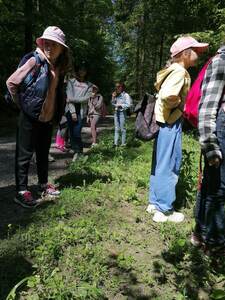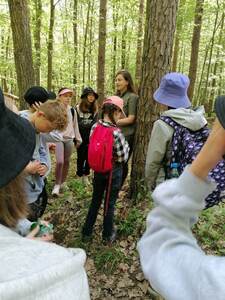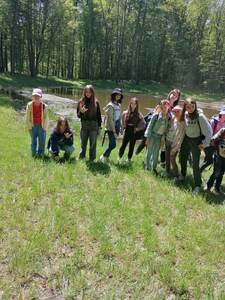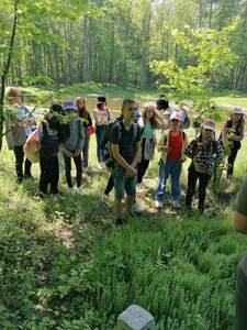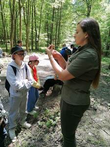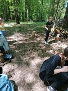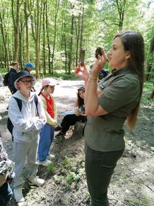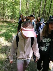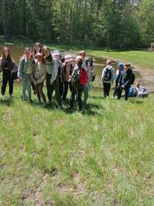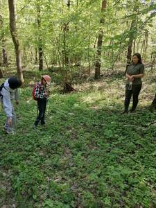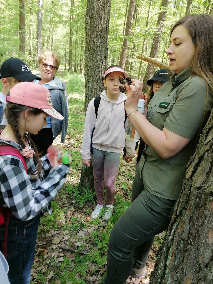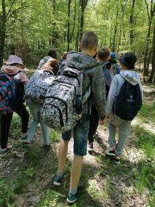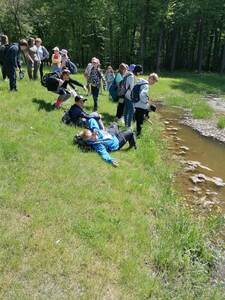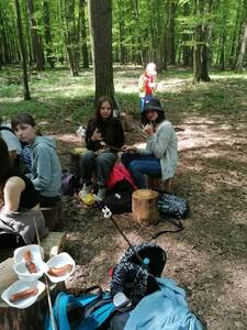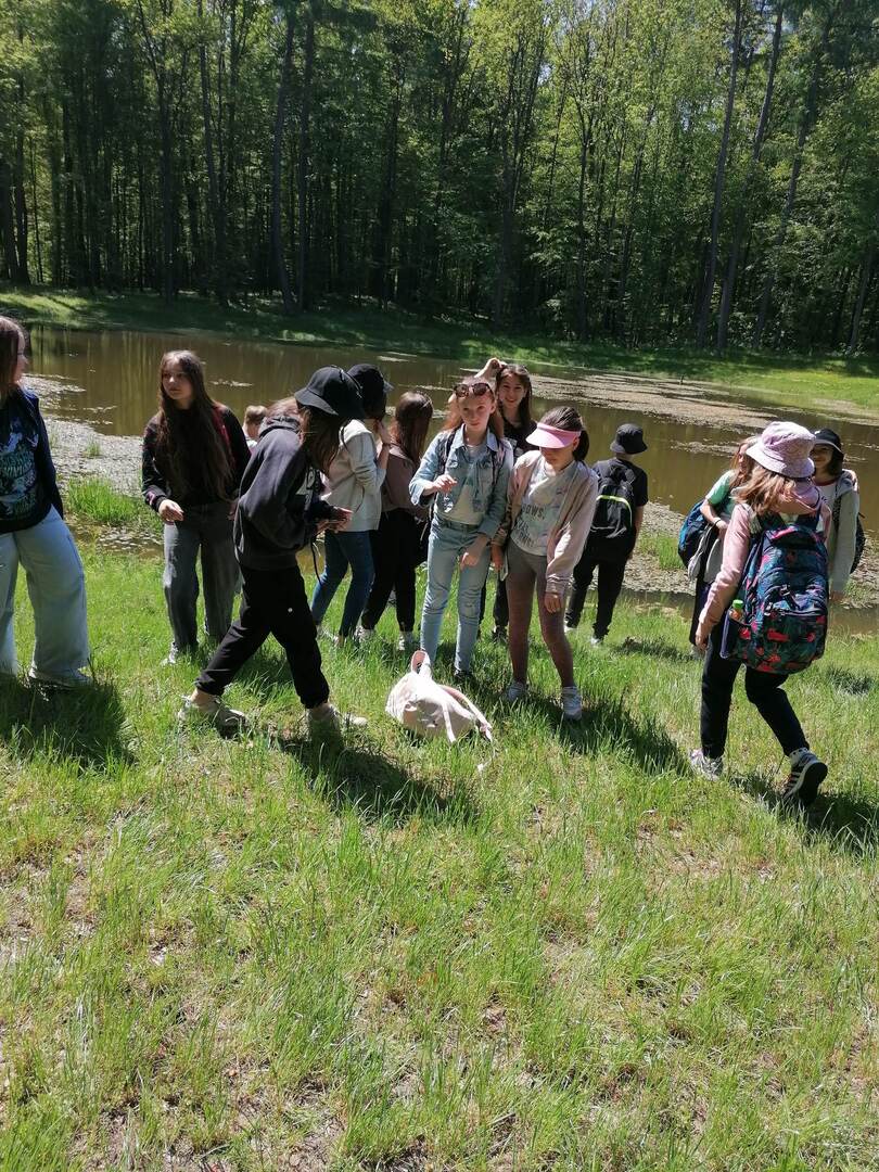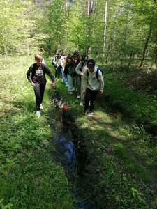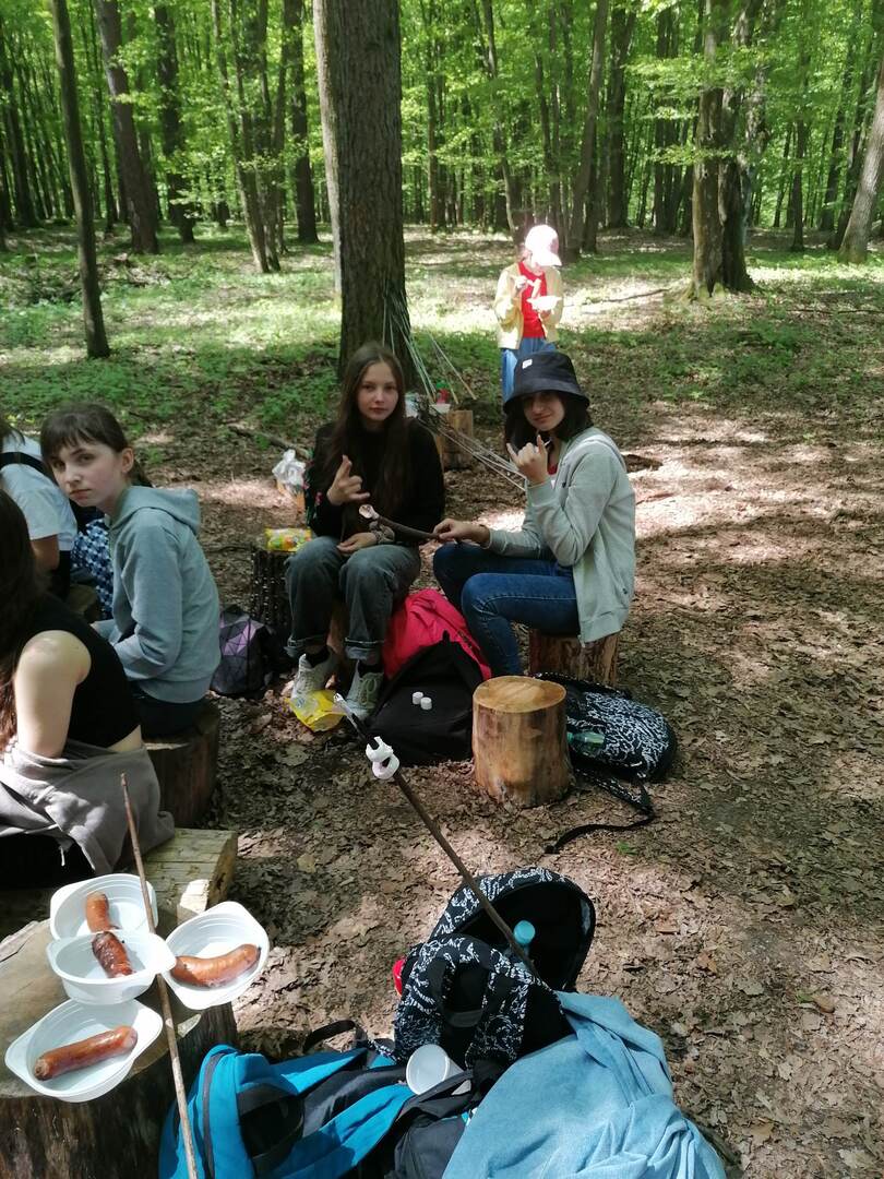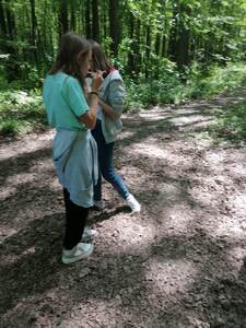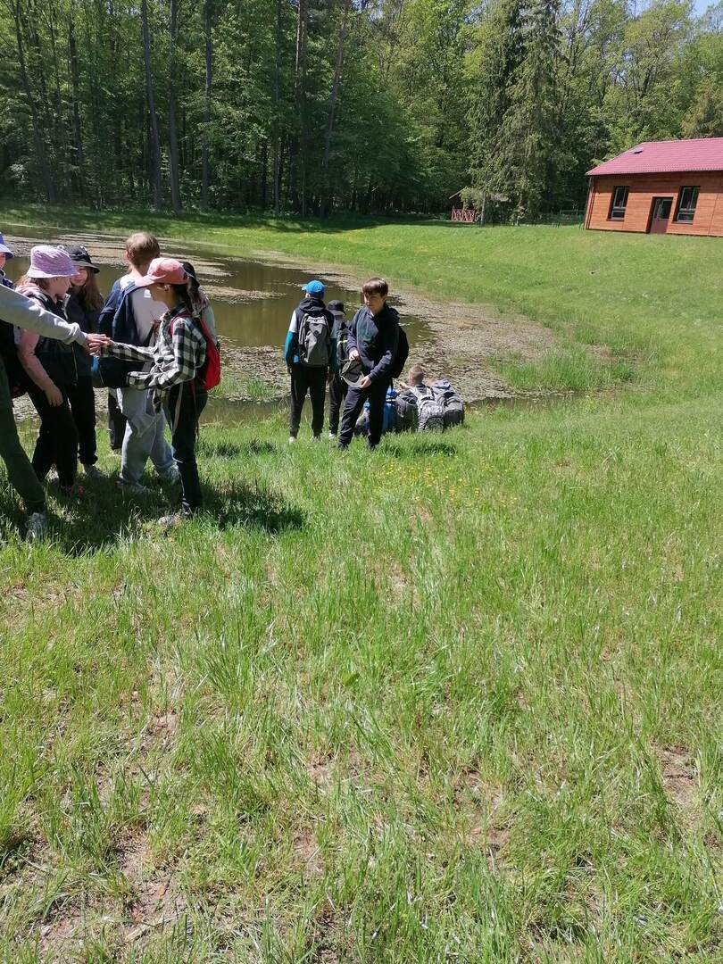 Na początku zajęć zapoznaliśmy się z przebiegiem trasy przyrodniczej oraz omówiliśmy zasady kulturalnego zachowania się w lesie. Podczas wędrówki mogliśmy zobaczyć z bliska młode okazy drzew, wchodzących w skład górnego piętra lasu grądowego (dąb szypułkowy, lipa drobnolistną, grab pospolity, klon zwyczajny). Na ścieżce edukacyjnej spotkaliśmy również osikę, brzozę brodawkowatą, czereśnię oraz wiązy - drzewa, które w lasach grądowych stanowią domieszkę w górnym piętrze lasu. Pięknie kwitło runo leśne, które odznacza się bogactwem gatunkowym i zróżnicowaniem sezonowym. Podziwialiśmy m.in. zawilca gajowego, gajowca żółtego, konwalię majową, dąbrówkę rozłogową, kopytnika pospolitego, narecznicę samczą, groszek wiosenny, konwalijkę dwulistną, szczawik zajęczy. Na trasie ścieżki przyrodniczej są też stare drzewa z dziuplami i obumierającymi gałęziami, a także drzewa stojące, lecz już martwe. Stanowią one środowisko życia licznych organizmów związanych pokarmowo lub środowiskowo z martwym drewnem. Wiele gatunków owadów żyje tylko na zamierających i martwych drzewach stojących. Przykładem mogą być gmachówki – duże leśne mrówki, które silnymi szczękami i ostrymi zębami drążą w drewnie korytarze tworząc oryginalne gniazda. W starych drzewach są też dziuple, które dają schronienie ptakom, ssakom i bezkręgowcom. Podczas zajęć mięliśmy okazję do poszerzenia wiedzy o lesie, jego mieszkańcach oraz o zasadach gospodarki leśnej. Wędrówkę leśnymi szlakami zakończyliśmy pieczeniem nad ogniskiem smakowitych kiełbasek.