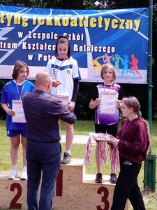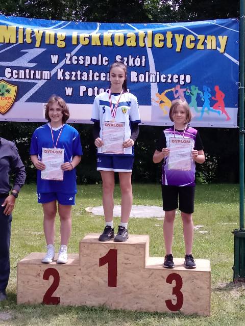 W dniu 7 czerwca 2023 roku, na stadionie lekkoatletycznym, przy ZSCKR w Potoczku, odbył się miting lekkoatletyczny dla uczniów klas VII- VIII, w rywalizacji wzięli też udział uczniowie tamtejszego technikum. W zawodach uczestniczyły drużyny ze szkół podstawowych Gminy Potok, oraz uczniowie klasy VII z naszej szkoły, którzy byli najmłodszymi uczestnikami. Młodzież rywalizowała w następujących konkurencjach: pchnięcie kulą (Julia Szczuka, Dominika Garbacz, Paweł Krzysztoń , Artur Jakubiec),skok w dal (Marianna Kraska, Oliwia Łukasik, Bartosz Butryn, Mateusz Spyt), bieg na 60 m (Aleksandra Wojtalaś , Paweł Krzysztoń),bieg długi 1000m chłopców i 600 m dziewcząt (Bartosz Butryn, Artur Jakubiec, Oliwia Łukasik , Julia Szczuka),sztafeta 4x100m (A. Jakubiec, B. Butryn, P. Krzysztoń, M. Spyt ; J. Szczuka, D. Garbacz, O. Łukasik, A. Wojtalaś). Uczniowie naszej szkoły pomimo iż byli najmłodszymi uczestnikami , osiągnęli bardzo dobry wynik w sztafecie 4x 100m chłopców, biegu na 1000m chłopców oraz biegu 600 m dziewcząt. Brawa dla Oliwi Łukasik , która zajęła trzecie miejsce w biegu na 600 m. Po zawodach wszyscy uczestnicy zostali zaproszeni na poczęstunek. Dziękujemy organizatorom mitingu za miłe przyjęcie.