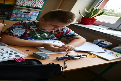 Dzieci w grupach konstruowały własny helikopter, który później próbowały uruchomić.