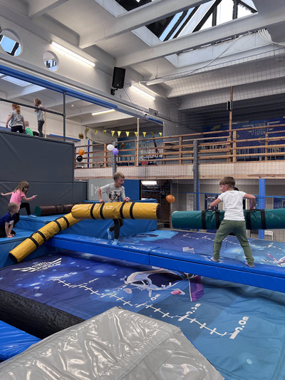 24.10.2023r Zerówka oraz klasy I oraz II wyjechały do Lublina do Stefy Wysokich Lotów. Dzieci mogły skakać, biegac, bawić się. Były dmuchańce oraz trampoliny. Na dzieci czekały tez konkursy. Zabawa była przednia.