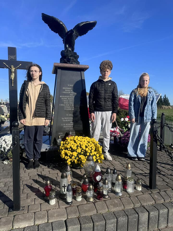 Ucznowie klasy VII sprzątali groby żołnierzy spoczywających na naszym cmentarzu a w Dzień Zaduszny zapalili znicze dla upamiętnienia ich bohaterstwa i męczeństwa.