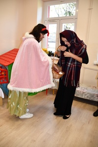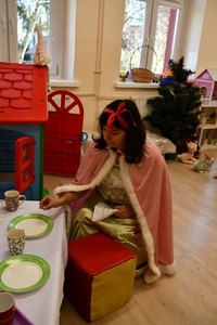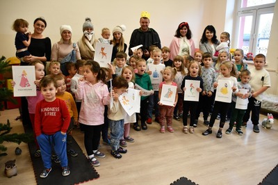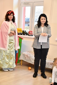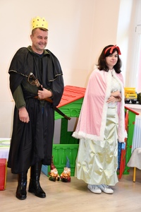 Międzynarodowy dzień Postaci z Bajek przypada w rocznicę urodzin Walta Disney’a i właśnie z tej okazji nasze przedszkole zamieniło się w niezwykłą bajkową krainę, w której dobro zmierzyło się ze złem. Gdzie ponadczasowe prawdy zwyciężyły z odwiecznym wrogiem. Dzięki zaangażowaniu naszej kadry nauczycieli i pracowników, którzy wcielili się w niecodzienne role bohaterów postaci z bajki Królewny Śnieżki i siedmiu krasnoludów, maluchu z oddziału przedszkolnego mogły przenieść się w zaczarowany świat. Gdzie zazdrosna królowa używając podstępu pragnęła pozbyć się niewinnej i pięknej królewny. Jednak na jej drodze staje 7 wspaniałych krasnali którzy udzielają schronienia i ratują dziewczynę przed zazdrosna macochą.