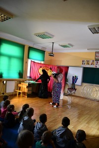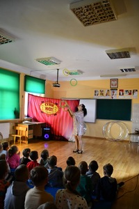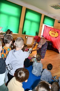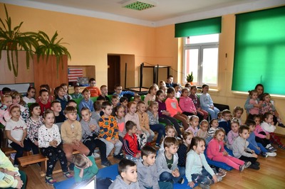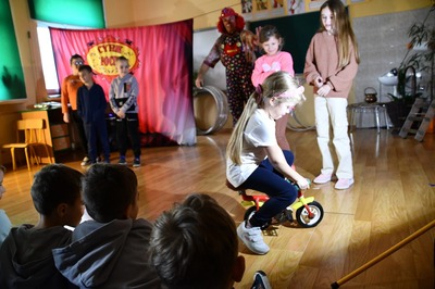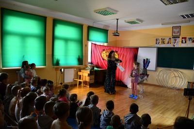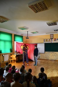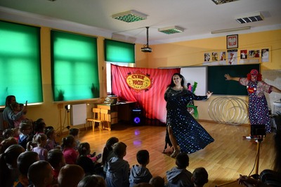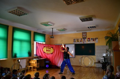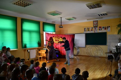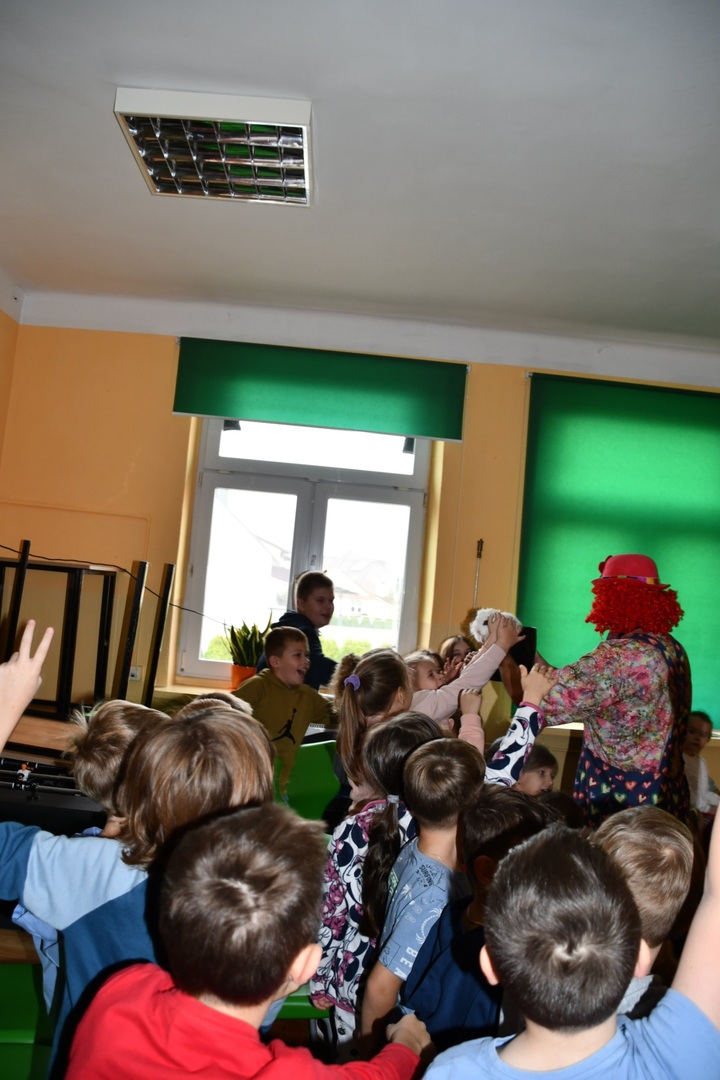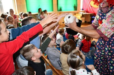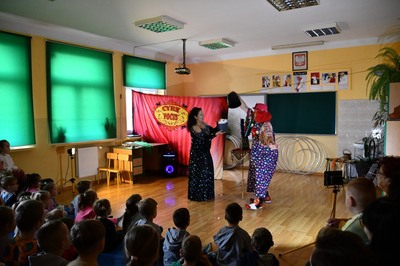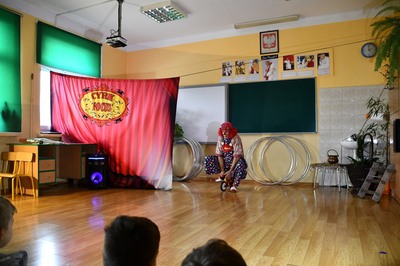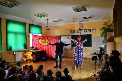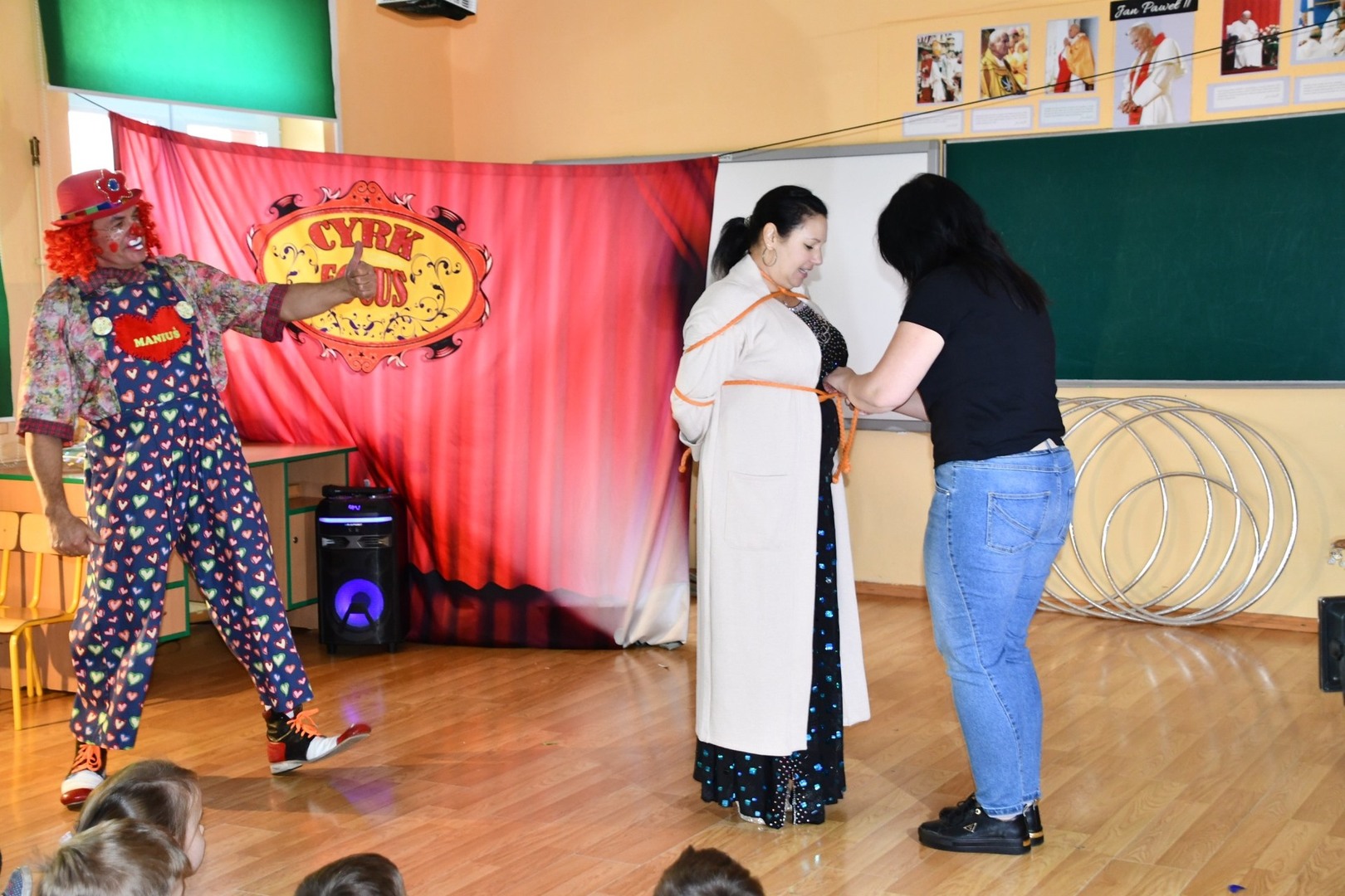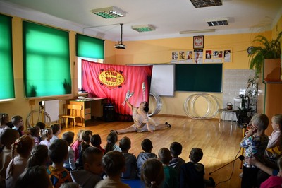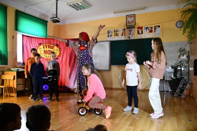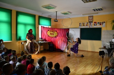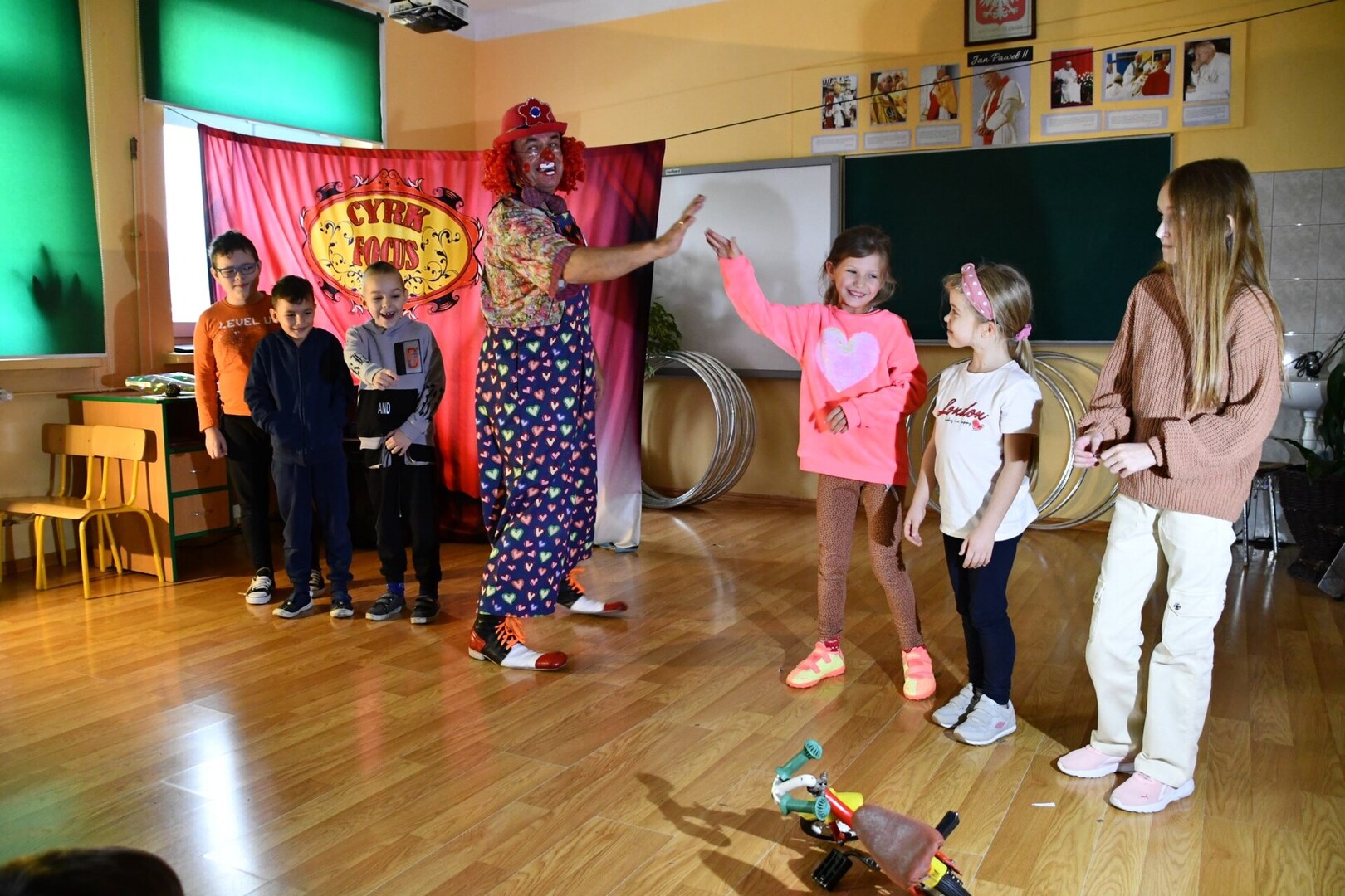 Przedszkolaki oraz klasy  I-III  w poniedziałek 13 listopada obejrzały przedstawienie artystów z cyrku „Fokus”. W czasie  występu mieliśmy okazję podziwiać  sztuczki cyrkowe, a także brać czynny udział w realizacji wielu z nich. Oglądaliśmy tresowane zwierzątka,  popisy akrobatyczne na małym rowerku i z obręczami. Wielką atrakcją okazał się królik, którego każde dziecko mogło dotknąć lub pogłaskać. Dzieciom spodobał się również zabawny klown Maniuś. Wszyscy doskonale bawili się oglądając występy cyrkowców i nagrodzili artystów gromkimi brawami, na które bezsprzecznie zasłużyli!