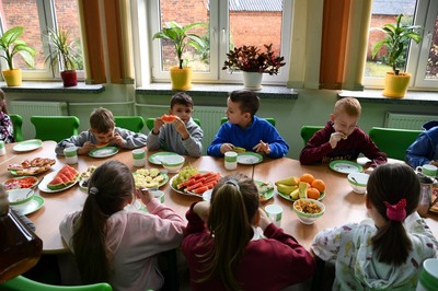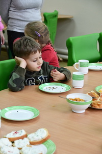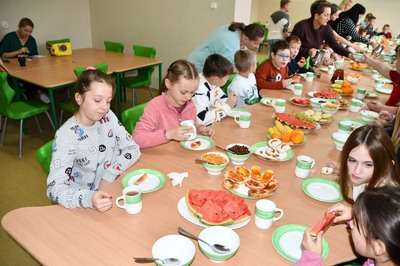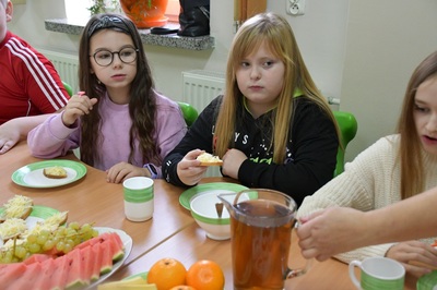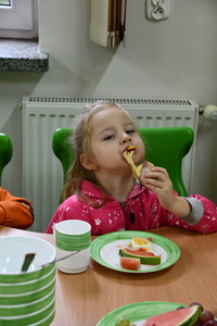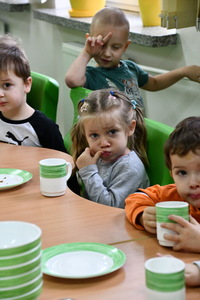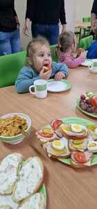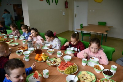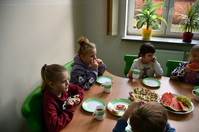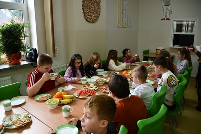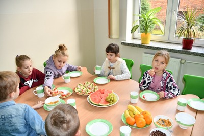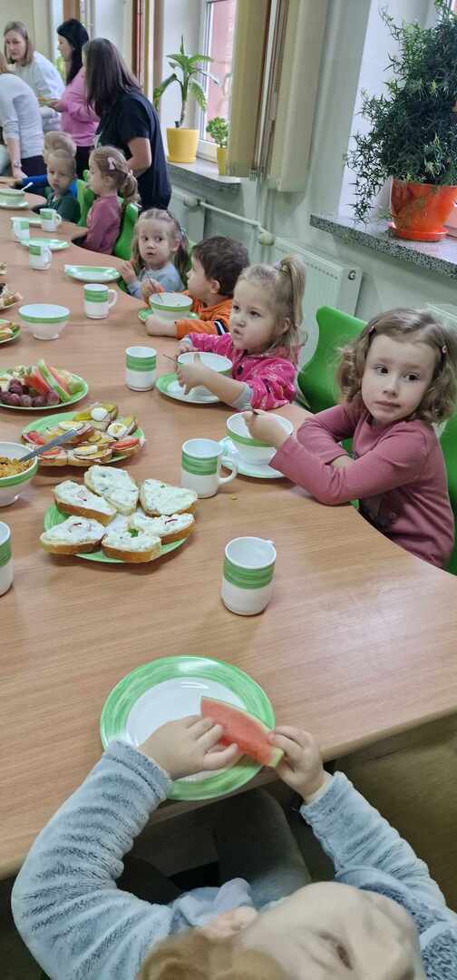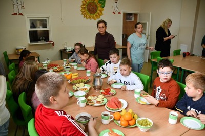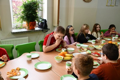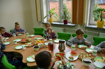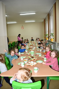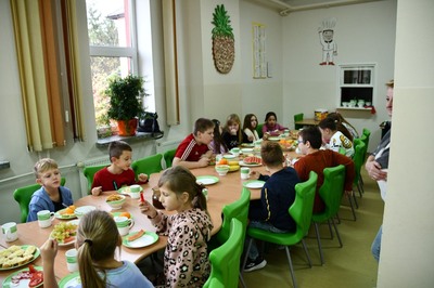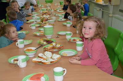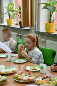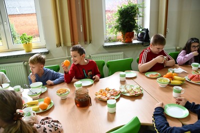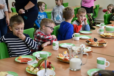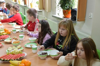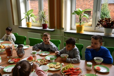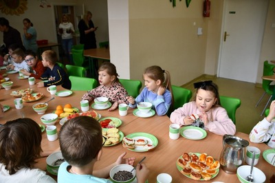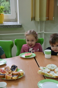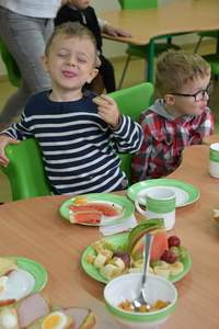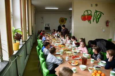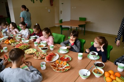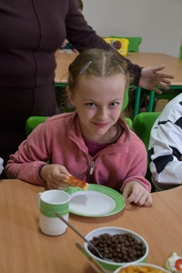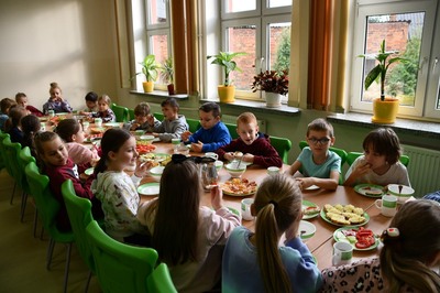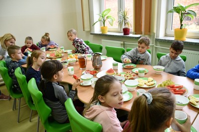 Program edukacyjny "Śniadanie Daje Moc" ma na celu przeciwdziałanie niedożywieniu dzieci w Polsce, oraz propagowanie zdrowych nawyków żywieniowych wśród najmłodszych. Aby edukacja prozdrowotna dziecka była skuteczna należy korzystać z różnorodnych bodźców i wspierać jego najbliższe środowisko, w którym wzrasta. Nasza placówka już od lat działa w tym kierunku z owocnym skutkiem. Od wczesnych godzin porannych w szkolnej stołówce unosiły się zapachy świeżych owoców, warzyw, gorącego mleka i innych pyszności. Z przyniesionych zdrowych produktów dzieci wraz z rodzicami i nauczycielami przygotowali kolorowe kanapki, mleczne zupy, owocowe przystawki, świeże soki itp. Wszystko było kolorowe, pachnące i bardzo smaczne o czym świadczą zdjęcia dzieci zajadających te smakołyki. Każdy z nas wie, że śniadanie jest ,,paliwem'' na początek dobrego dnia dlatego dbajmy o to aby nasze pierwsze posiłki były bogate w witaminy, które dodadzą nam energii i zdrowia w tym lepszą pracę umysłu a tego potrzebują nasze dzieci i każdy z nas. Smacznego!