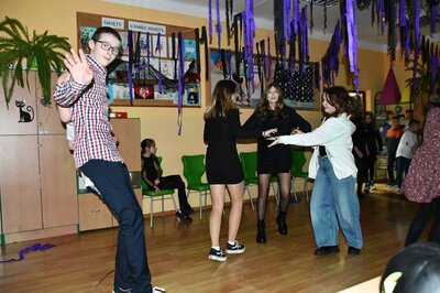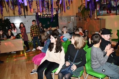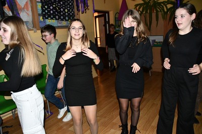 Zabawę andrzejkową uświetniły  przeboje muzyczne, podczas których uczniowie  mogli pochwalić się swoimi umiejętnościami tanecznymi. Zabawy i uśmiechu było wiele. Spędzony wspólnie czas przepełniony był dużą dawką uśmiechu i  wspaniałą okazją do integracji wszystkich przybyłych uczniów  naszej szkoły. Zabawy, radości oraz uśmiechu było wiele             i wszyscy z utęsknieniem czekają już na następny andrzejkowy show.                     Dziękujemy wszystkim za wspaniałą zabawę.