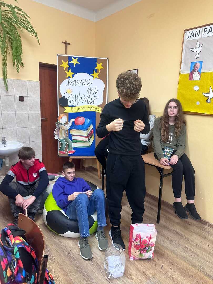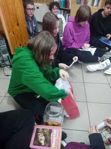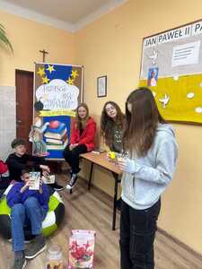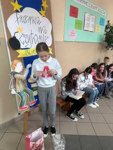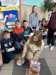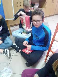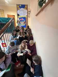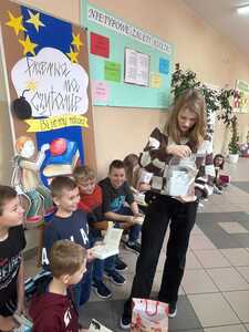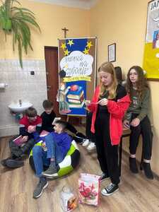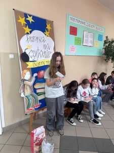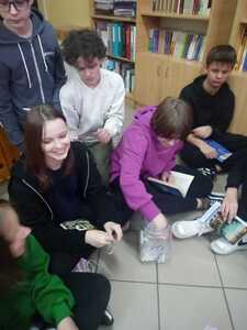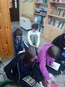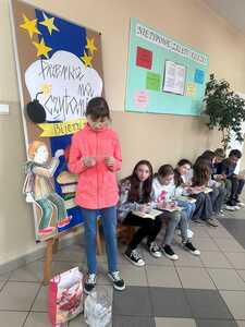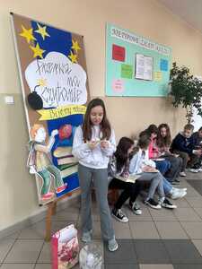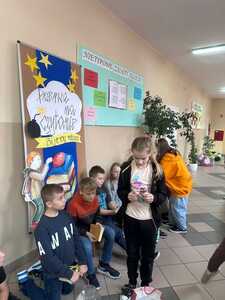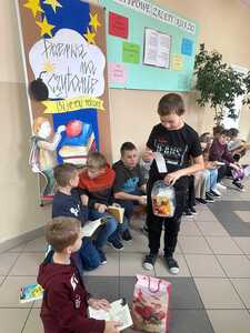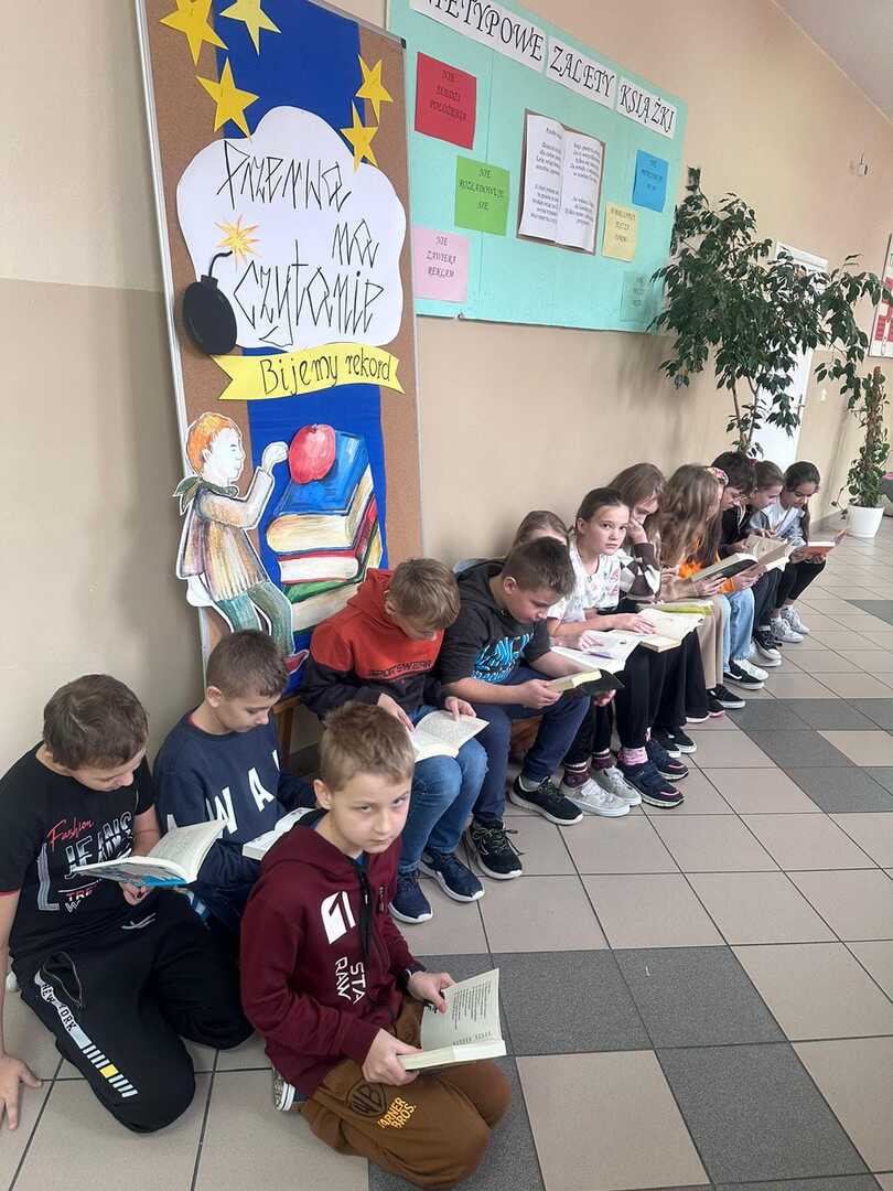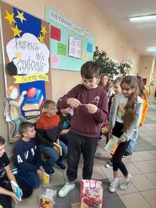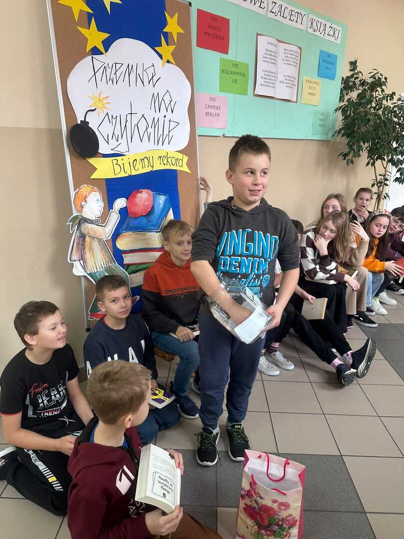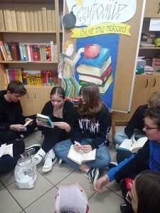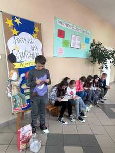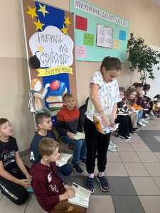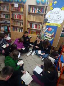 Uczniowie czytali przyniesione przez siebie lub wypożyczone z biblioteki szkolnej książki. Miejsce do czytania klasy wybierały same. Niektórzy byli tak zaczytani, że nie zauważyli, że przerwa dobiegła końca. Atrakcją ,, Przerwy na czytanie’’ był mini konkurs ze znajomości lektury. Uczniowie losowali i odpowiadali na pytania nawiązujące co tytułów przeczytanych książek. Na uczniów , którzy znali odpowiedzi  czekał słodki upominek.