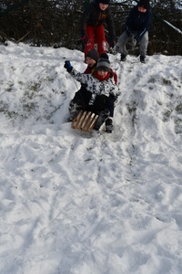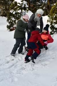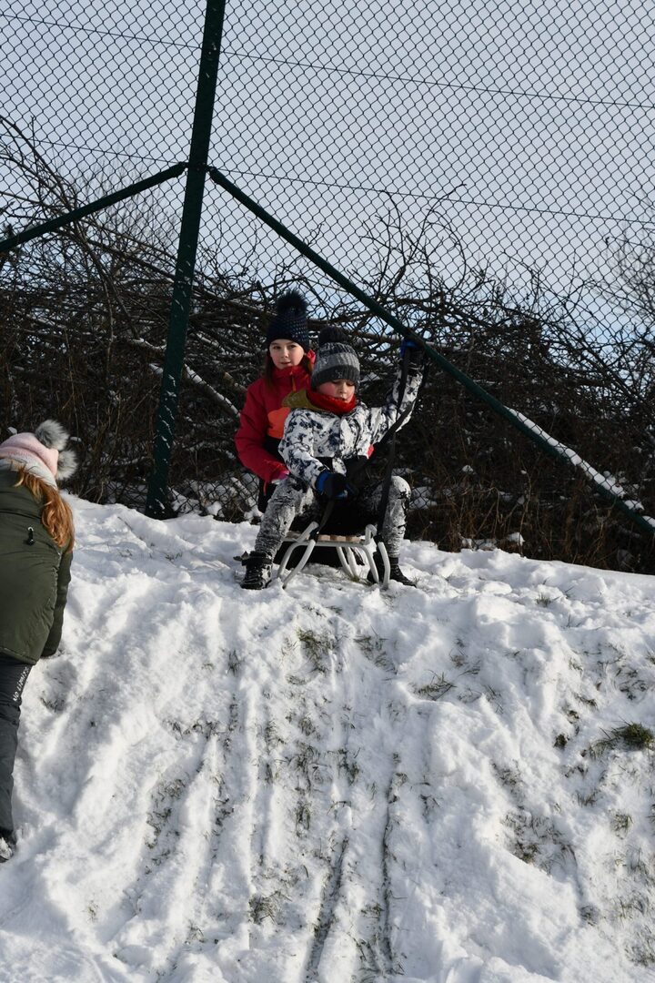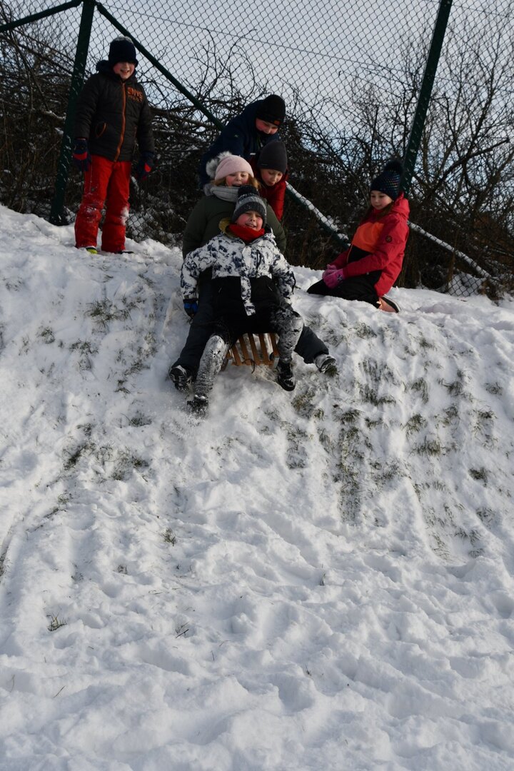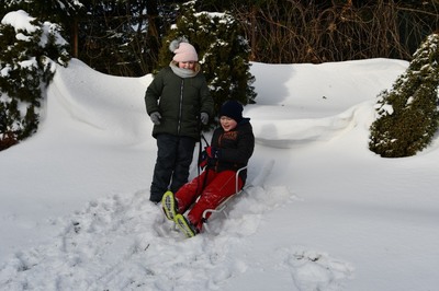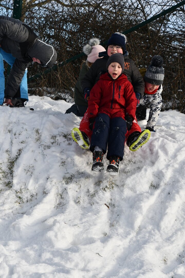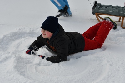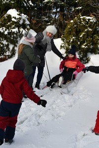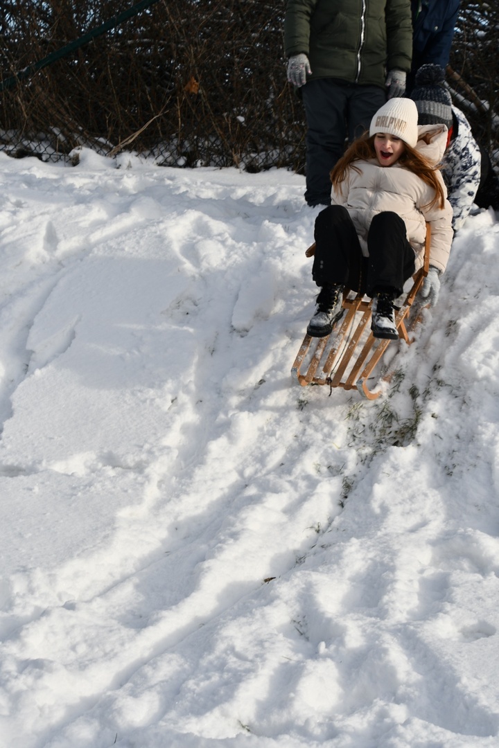 Korzystamy z uroków zimy! Klasa III wraz z wychowawczynią wybrała się na zimowy spacer.Były przygotowane sanki, więc robiliśmy zaprzęgi. Miękki i puszysty śnieg zachęcał do przewracanek. Powstawały piękne ,,orły" i ,,kwiatki". Nie zrezygnowaliśmy też z bezpiecznego lodu. Odbyła się nauka ślizgania na butach w różnych wariantach i pozach.Mróz pięknie pokolorował na rumiano nasze policzki, a piękne i dawno nie widziane słońce pomogło w produkcji witaminy D3 i endorfin. Wróciliśmy zmęczeni , ale zadowoleni.