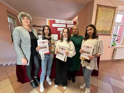 Doceniając trud włożony w przygotowania do konkursu Dyrekcja Szkoły - Marta Plichta, nagrodziła uczennice nagrodami książkowymi.