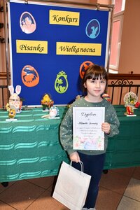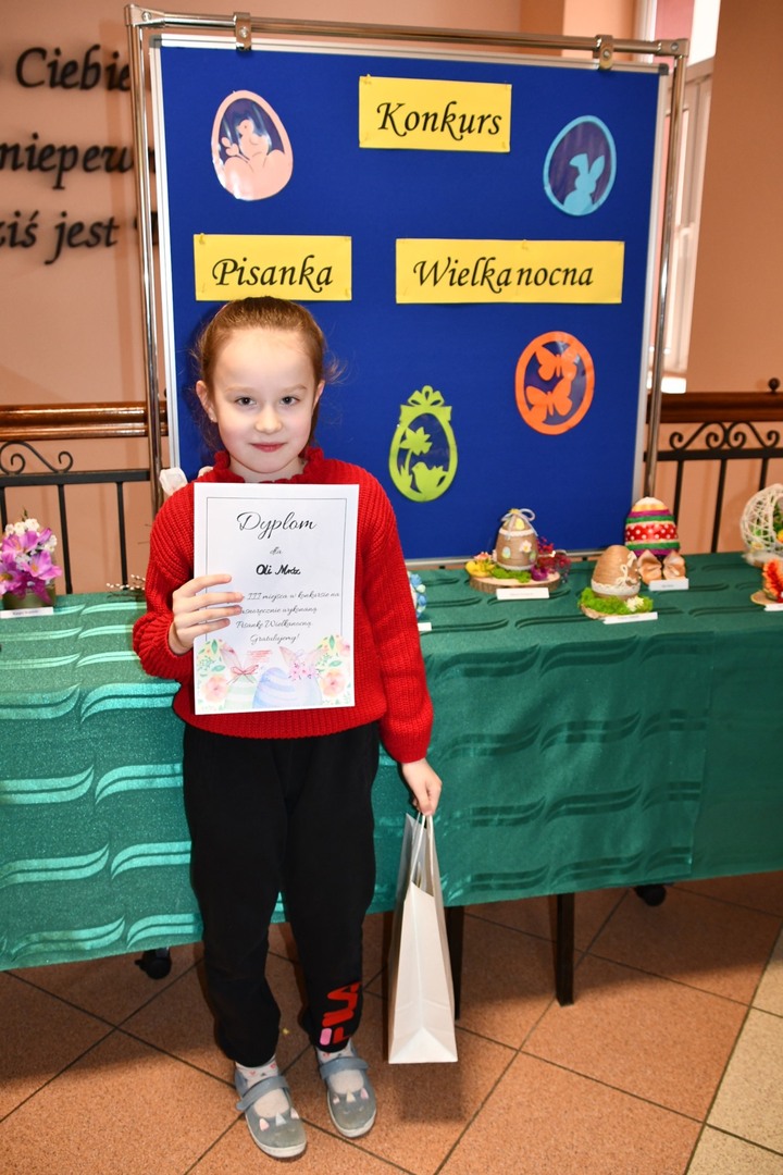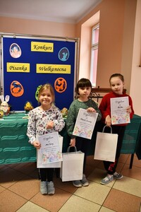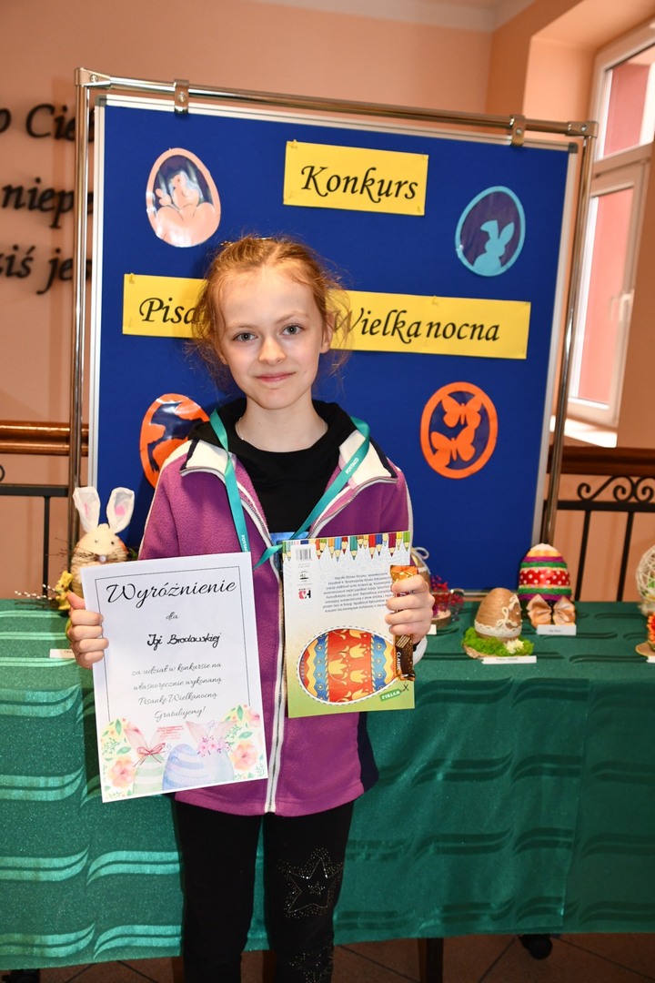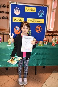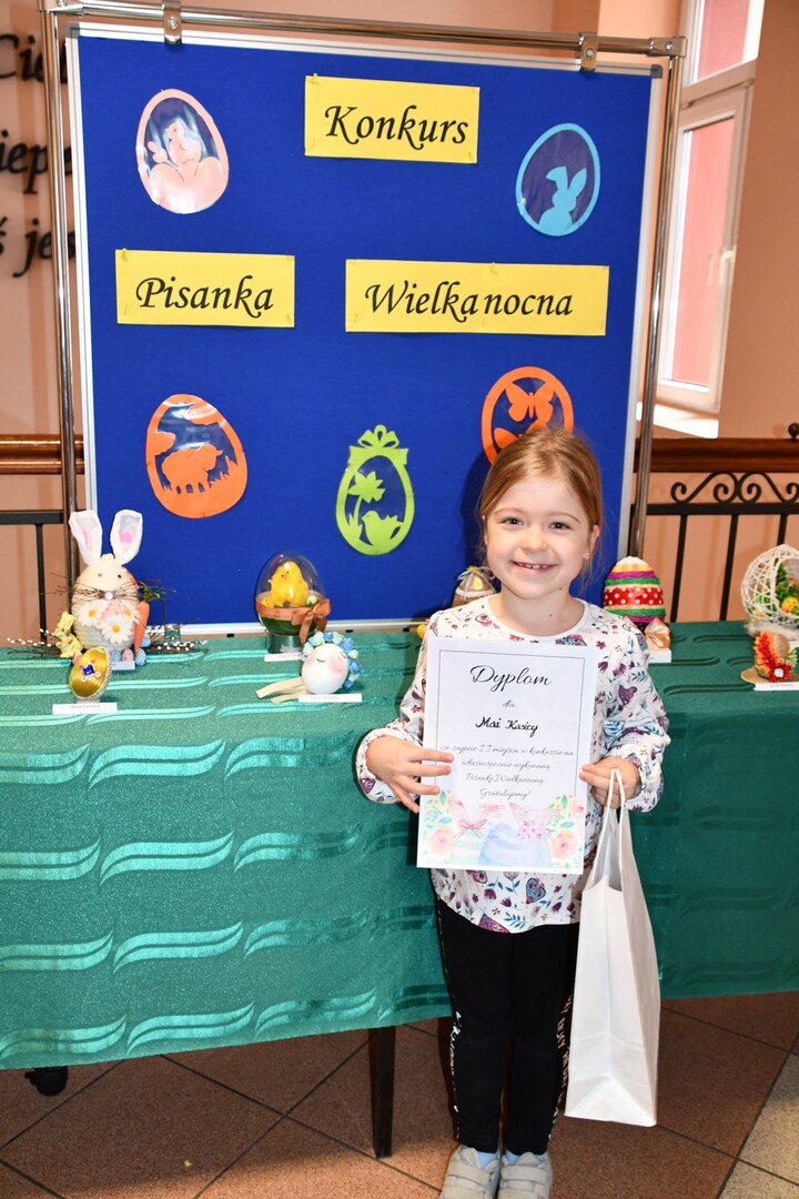 18 marca 2024 r. nastąpiło rozstrzygnięcie konkursu na własnoręcznie wykonaną "PISANKĘ WIELKANOCNĄ", w którym udział brali uczniowie klas 0 - III. Prace konkursowe rywalizowały między sobą wielkością, sposobem wykonania oraz kolorami. Wszystkie pisanki były na najwyższym poziomie, a pomysły na ich wykonanie bardzo oryginalne. Jury miało bardzo trudne zadanie z wyłonieniem zwycięzcy, jednakże ostatecznie zdecydowało przyznać I miejsce - Klaudii Surowskiej z kl. I, miejsce II - Mai Kasicy z kl. I, zaś miejsce III - Oli Mróz z kl. II. Dziewczynki otrzymały pamiątkowe dyplomy oraz nagrody, natomiast pozostali uczestnicy konkursu również zostali nagrodzeni dyplomami i drobnymi upominkami.