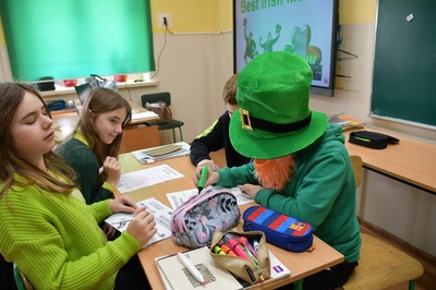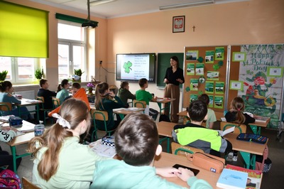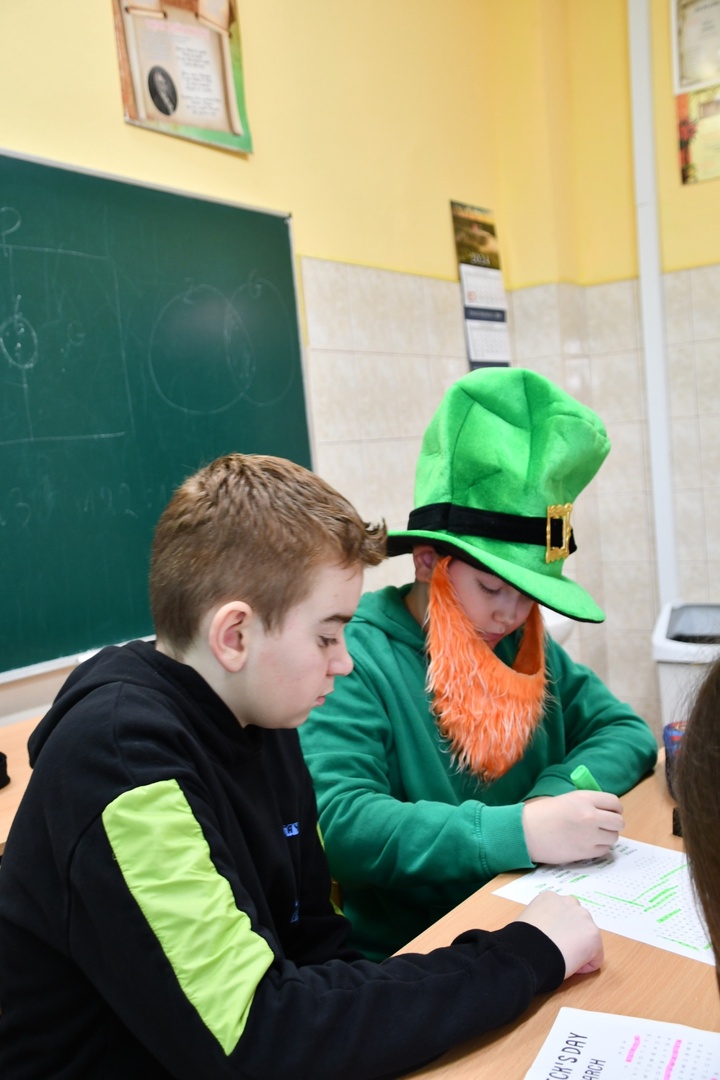 Na zajęciach z języka angielskiego uczniowie klas IV-VII dowiedzieli się kim dla mieszkańców Irlandii jest Święty Patryk, poznali życiorys i legendy związane z tą postacią przedstawioną w prezentacji multimedialnej. Rozwiązywali multimedialne quizy za pomocą telefonów komórkowych oraz kodów QR związanych z Dniem Św. Patryka, zwyczajami panującymi w Irlandii, słuchali piosenek Irlandzkich. Takie lekcje nigdy się nie nudzą!