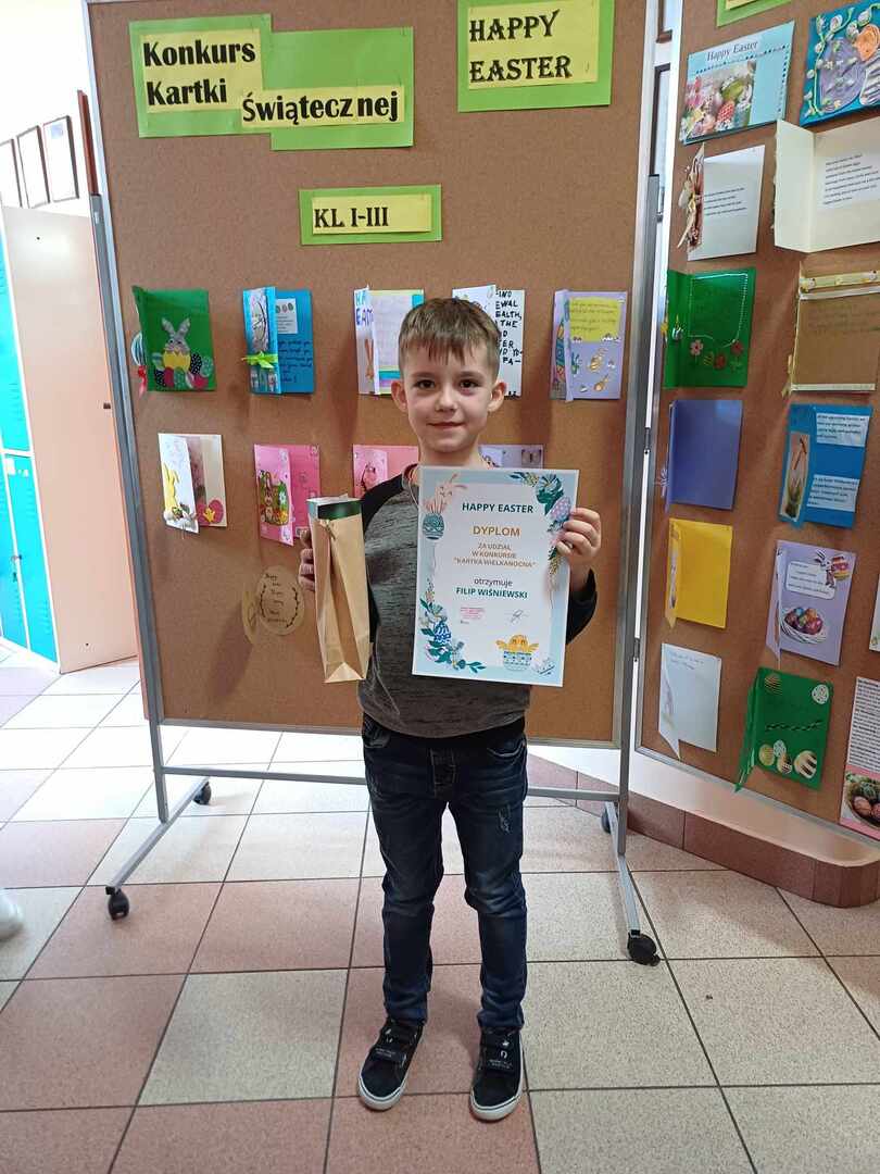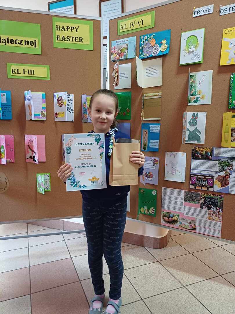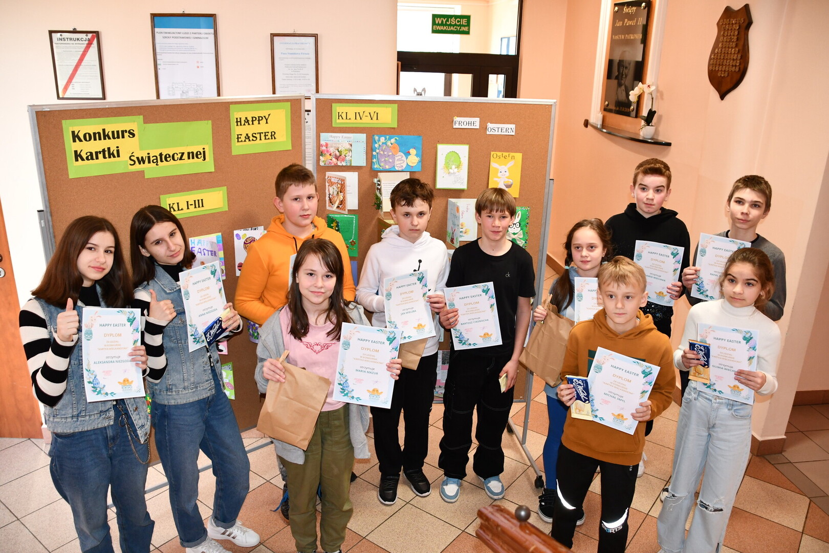 Zadaniem do wykonania w ramach konkursu było samodzielne wykonanie przez uczniów kartki wielkanocnej z życzeniami w języku angielskim.