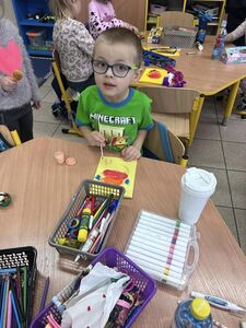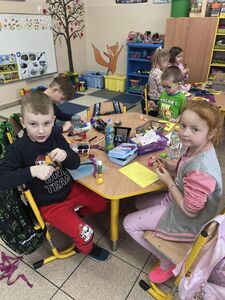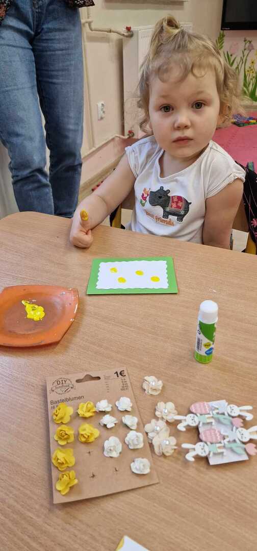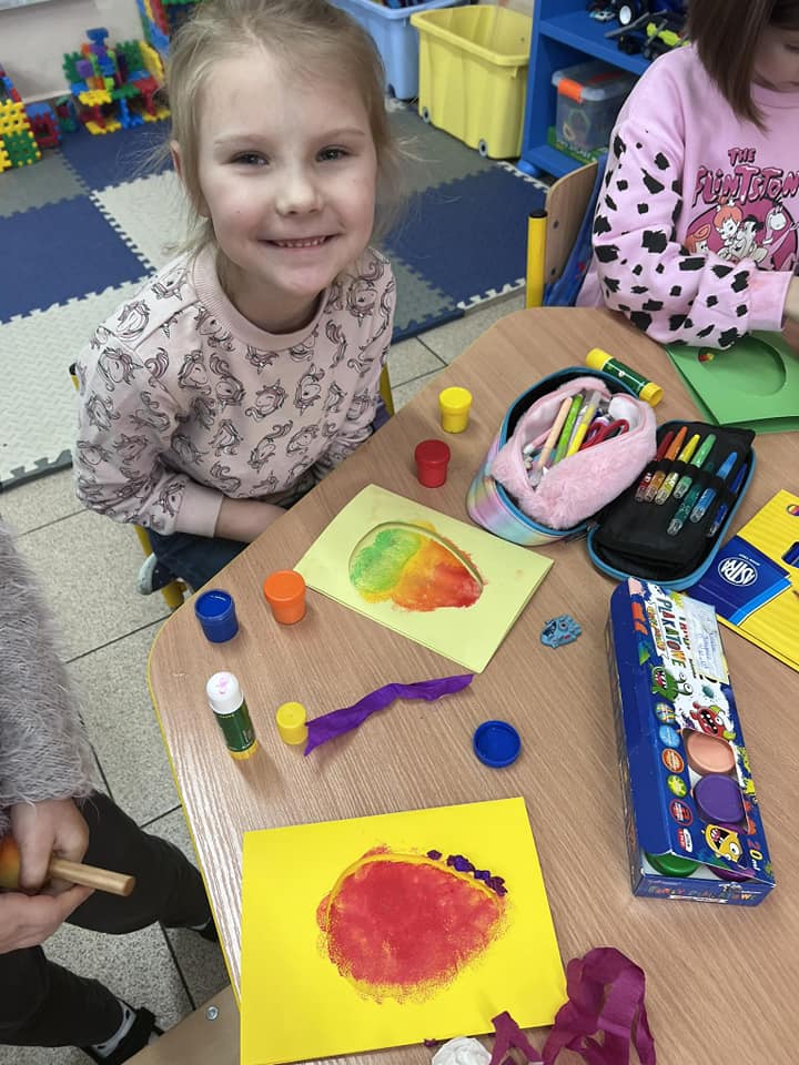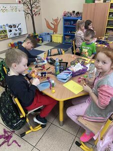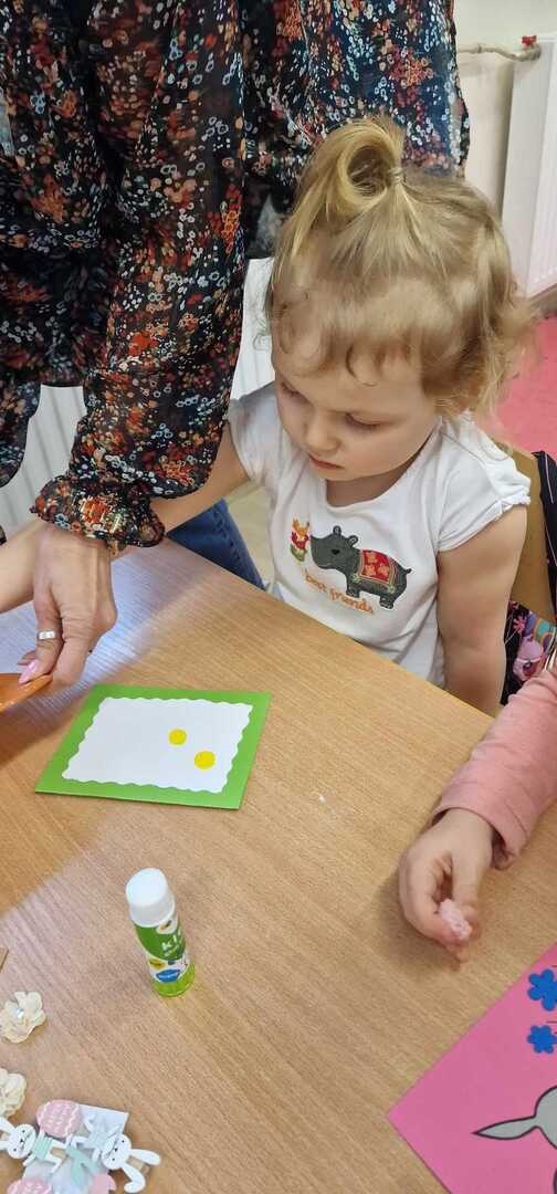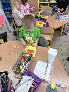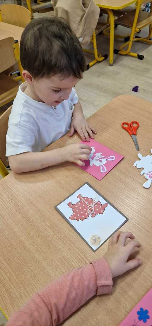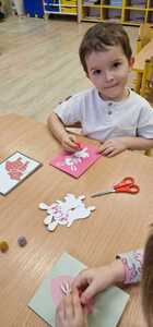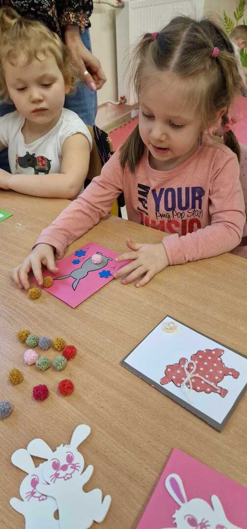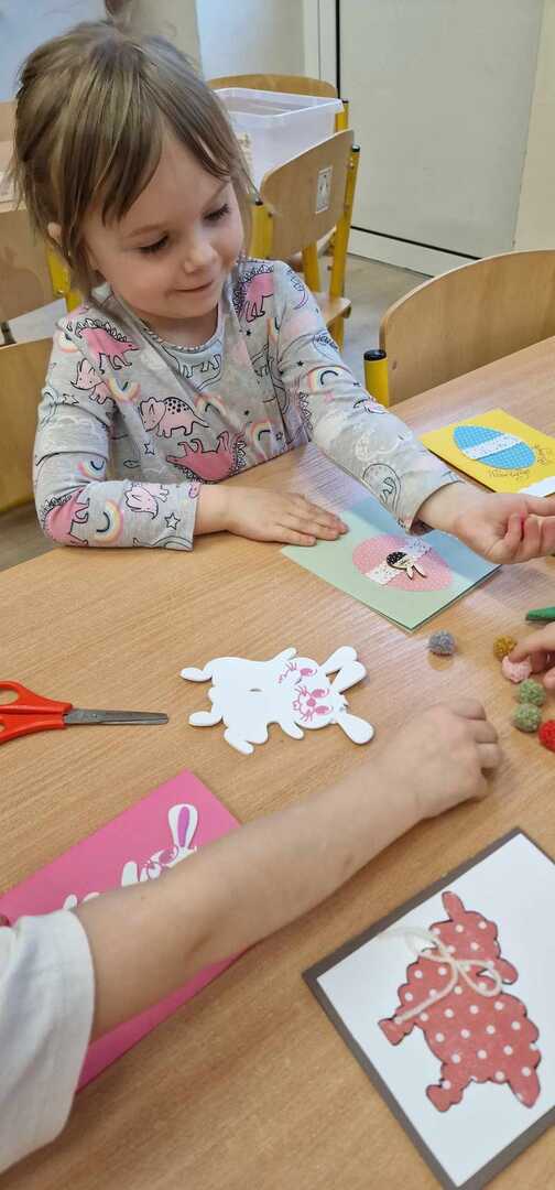 Z okazji zbliżających się Świąt Wielkanocnych dzieci z przedszkola wspólnie z  wychowawcami  przygotowały kartki dla seniorów.   Wierzymy, że ten drobny upominek wywoła uśmiech na twarzach osób obdarowanych. Przy okazji wykonywania kartek świątecznych, podjęty został z  dziećmi trudny temat samotności, podczas omawiana którego dzieci wykazały się duża dawką empatii i chęcią niesienia pomocy na różne sposoby. Była to ważna i potrzebna lekcja życzliwości i szlachetności.
