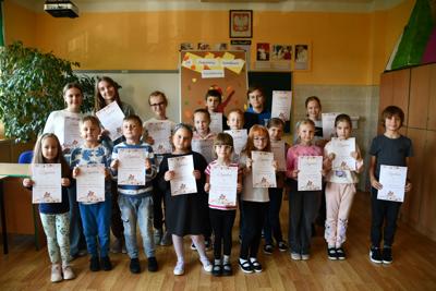 Serdecznie gratulujemy wszystkim uczestnikom konkursu, a szczególnie Ani i Kubie, którzy będą reprezentować naszą szkołę na etapie powiatowym. Życzymy im dalszych sukcesów!