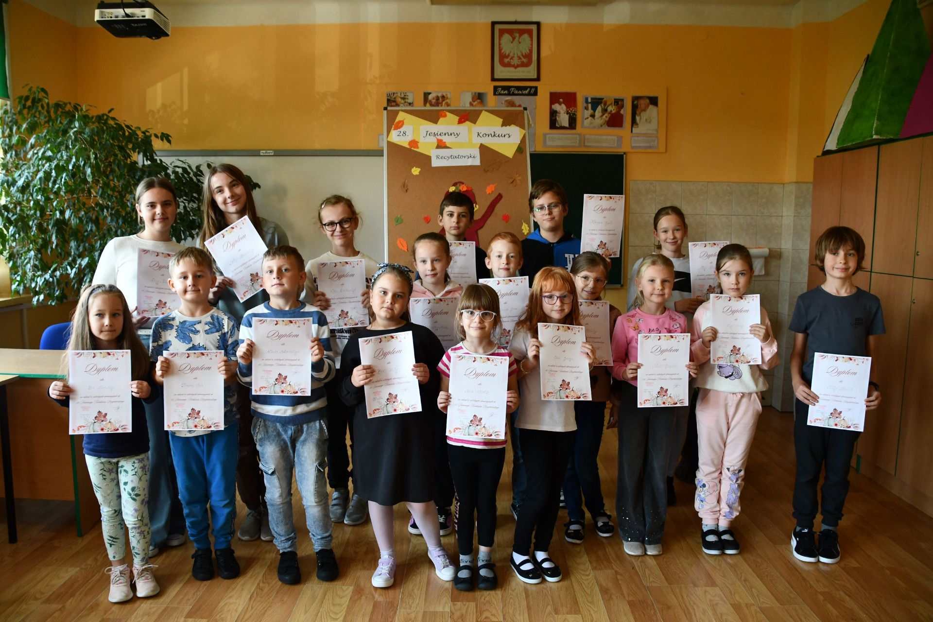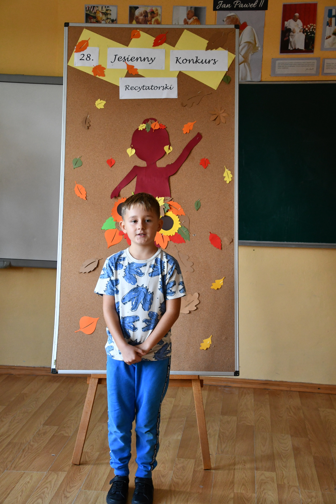 W minioną środę (09.19.2024 r.) odbył się Jesienny konkurs recytatorski na terenie naszej gminy. W eliminacjach szkolnych wyłoniono najlepszych uczniów, którzy stanęli do rywalizacji na etapie gminnym. Szkołę reprezentowali: Natalia Jarzynka (kl. 1), Norbert Kamiński (kl. 2), Ola Mróz, Ania Pastucha, Kuba Kudrel (kl. 3), Iga Brodowska (kl. 4), Alicja Mróz (kl. 6), Kinga Zaremska i Kacper Gąska (kl. 7).